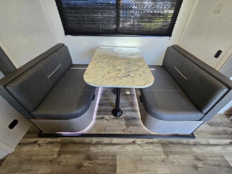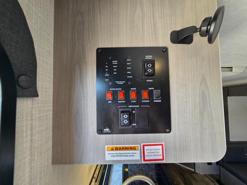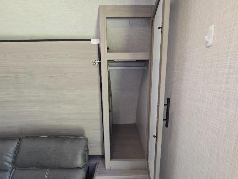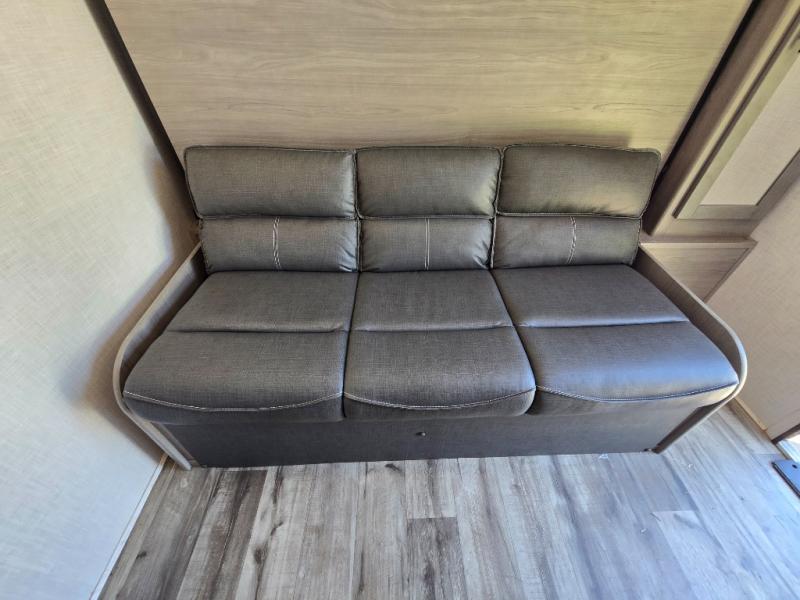 Inside, the cleverly designed Murphy bed provides flexible sleeping space and converts easily from a sofa during the day. A set of rear bunk beds makes this unit perfect for families or guests, while the dinette slide expands the living area for added comfort.