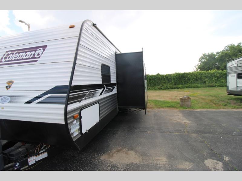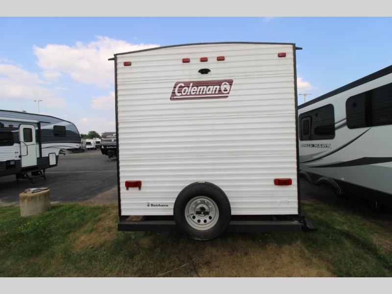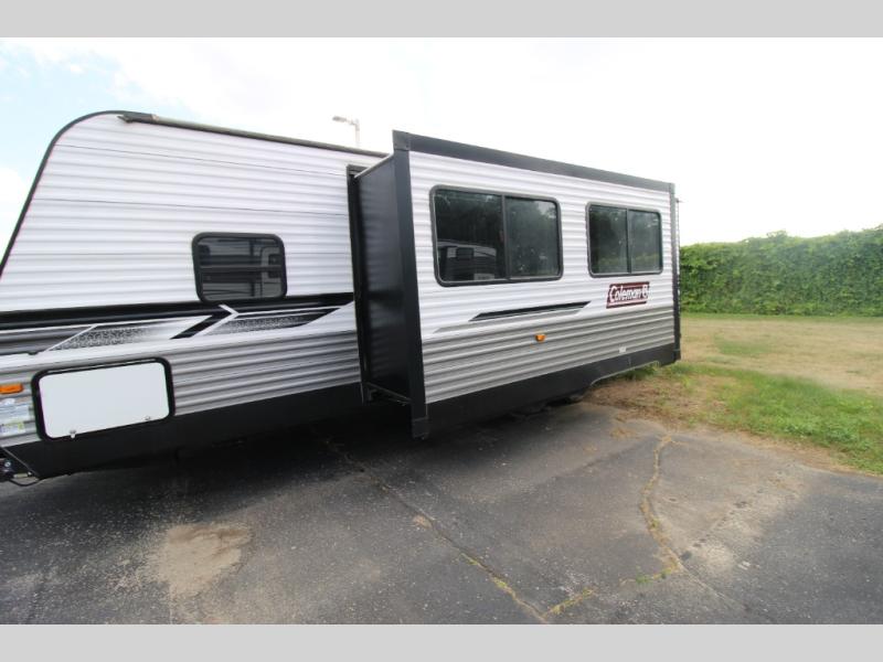 With any Coleman Lantern Series travel trailer and toy hauler travel trailer, the interior will impress with upgraded residential grade linoleum and Eyewear luxury furniture for style and durability, the undermounted large kitchen sink with stainless steel high-rise kitchen faucet, and seamless countertops, plus the hard valances in the living room and master bedroom and the AM/FM/CD/AUX/Bluetooth stereo. The Dutchmen construction advantage is included and provides a durable roof structure with a TPO roof, 3/8" decking, fiberglass insulation, and a lauan interior panel, plus an insulated structure with a metal exterior panel, a wood frame with R7 thermal insulation and an lauan interior panel. Also included is the Blade air flow system which helps reduce air turbulence and noise with duct elbows and wyes that feature enlarged inlets. Choose a Coleman Lantern Series because you appreciate quality, value and design when you camp!