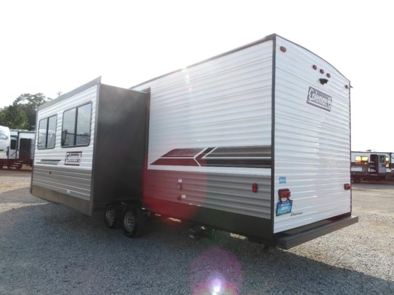 With any Coleman Lantern Series travel trailer and toy hauler travel trailer, the interior will impress with upgraded residential grade linoleum and Eyewear luxury furniture for style and durability, the undermounted large kitchen sink with stainless steel high-rise kitchen faucet, and seamless countertops, plus the hard valances in the living room and master bedroom and the AM/FM/CD/AUX/Bluetooth stereo. The Dutchmen construction advantage is included and provides a durable roof structure with a TPO roof, 3/8" decking, fiberglass insulation, and a lauan interior panel, plus an insulated structure with a metal exterior panel, a wood frame with R7 thermal insulation and an lauan interior panel. Also included is the Blade air flow system which helps reduce air turbulence and noise with duct elbows and wyes that feature enlarged inlets. Choose a Coleman Lantern Series because you appreciate quality, value and design when you camp!