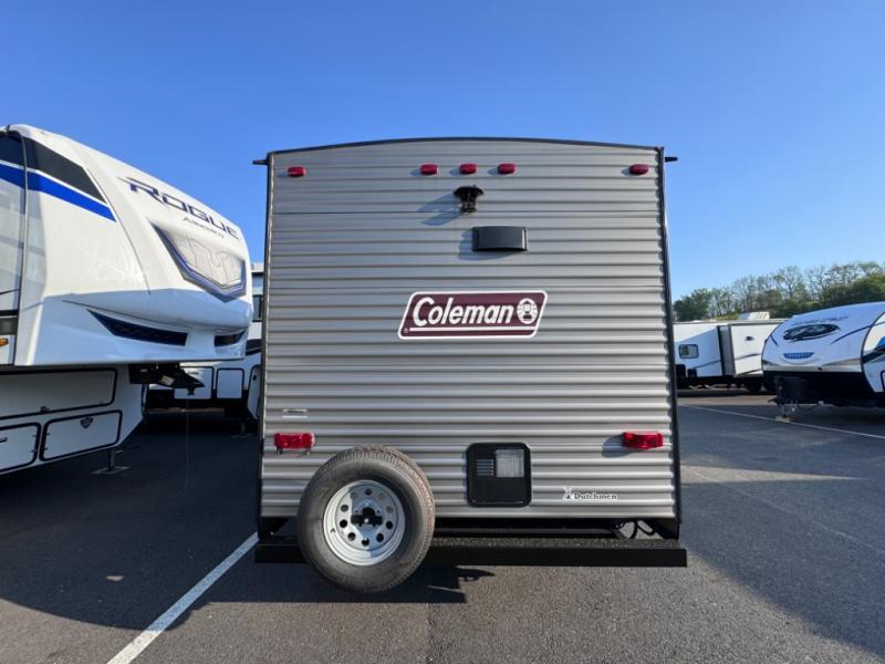 With any Coleman Lantern Series travel trailer and toy hauler travel trailer, the interior will impress with upgraded residential grade linoleum and Eyewear luxury furniture for style and durability, the undermounted large kitchen sink with stainless steel high-rise kitchen faucet, and seamless countertops, plus the hard valances in the living room and master bedroom and the AM/FM/CD/AUX/Bluetooth stereo. The Dutchmen construction advantage is included and provides a durable roof structure with a TPO roof, 3/8" decking, fiberglass insulation, and a lauan interior panel, plus an insulated structure with a metal exterior panel, a wood frame with R7 thermal insulation and an lauan interior panel. Also included is the Blade air flow system which helps reduce air turbulence and noise with duct elbows and wyes that feature enlarged inlets. Choose a Coleman Lantern Series because you appreciate quality, value and design when you camp!