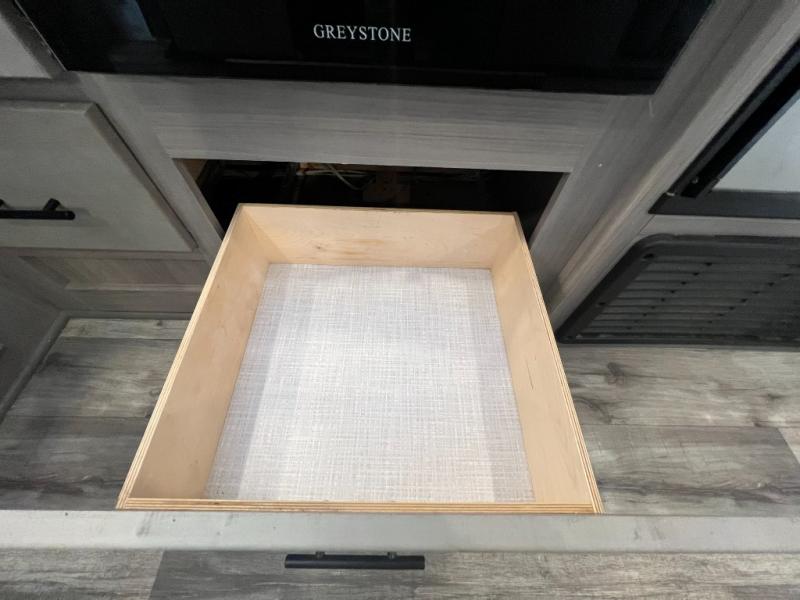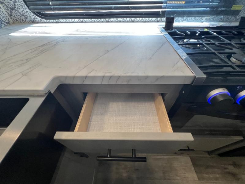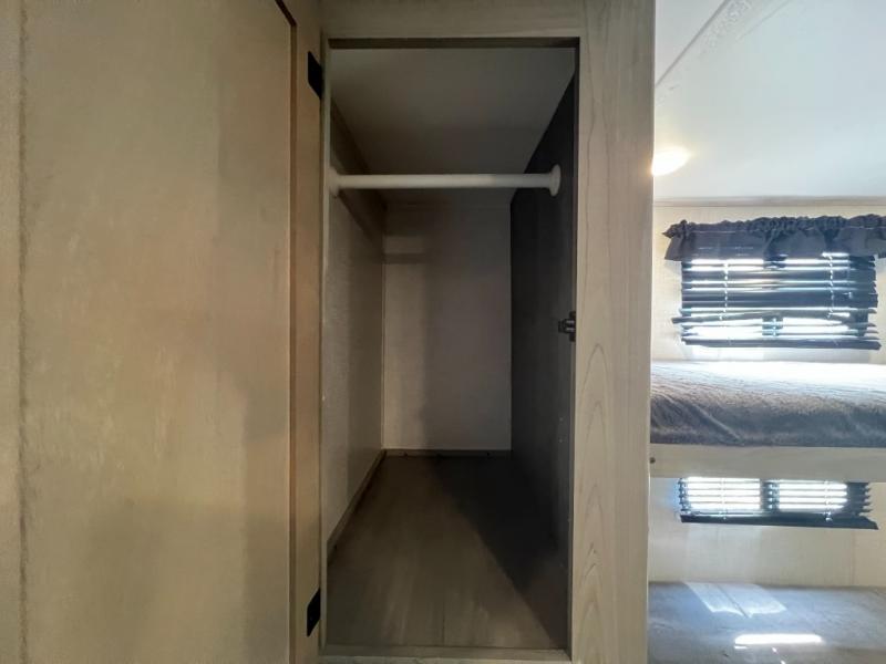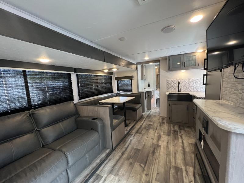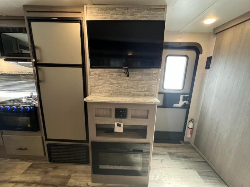 If you need a lot of space to sleep an entire family, this Coleman Light travel trailer is going to be your best choice! There is a private bunkhouse that has a flip-up bunk, sofa, a set of bunks, and a slide out, and there is also a private bedroom with a residential queen bed at the front of this trailer. You can even use the reclining sofa and U-shaped dinette as additional sleeping locations. The exterior is outfitted with excellent features, like an outside shower, outdoor kitchen, two entry doors, 18' power awning, and pass-through storage. Back on the interior, you'll find a fireplace to add a little extra heat on chilly evenings, and the walk-through bathroom can be accessed both from the main living area and the front bedroom.