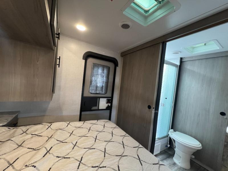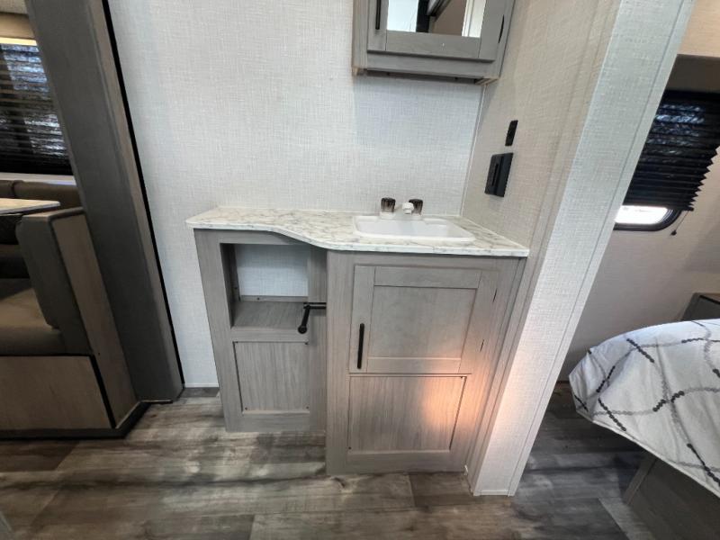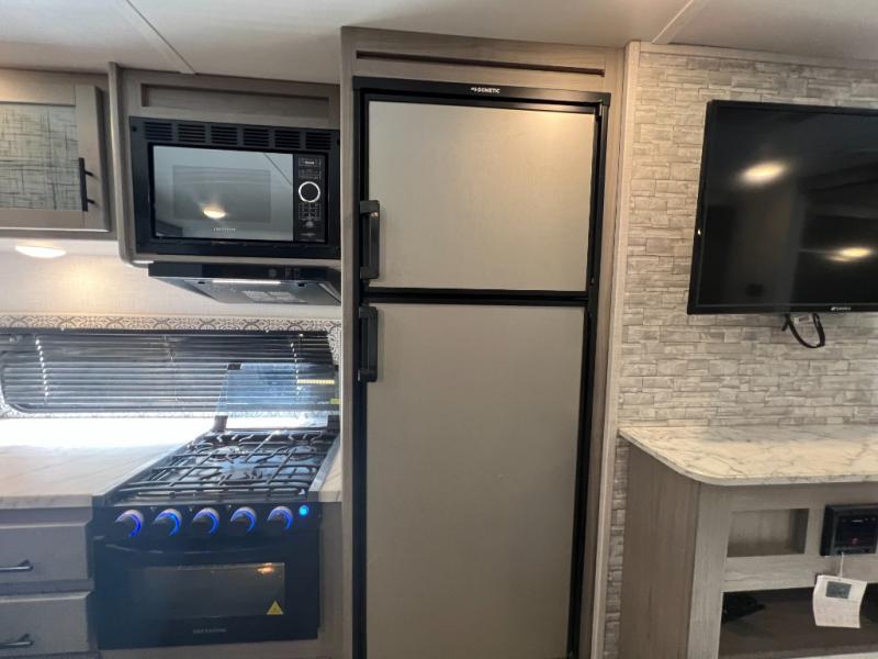 The Dutchmen Coleman Light travel trailer features an upgraded kitchen package with residential appliances, high-rise faucets, and a stainless steel farm-style sink. The fully enclosed underbelly allows all of your trailer's vital functions to be kept out of the freezing cold, and you'll have great stability as you enter your trailer by using the solid entry steps. Each model includes power stabilizer jacks, a power tongue jack, dual 20-LB propane tanks, a residential queen bed, and preparations for Wi-Fi 4G LTE. There is an aerodynamic front fiberglass cap, exterior speakers, solar charging connection, and aluminum wheels.