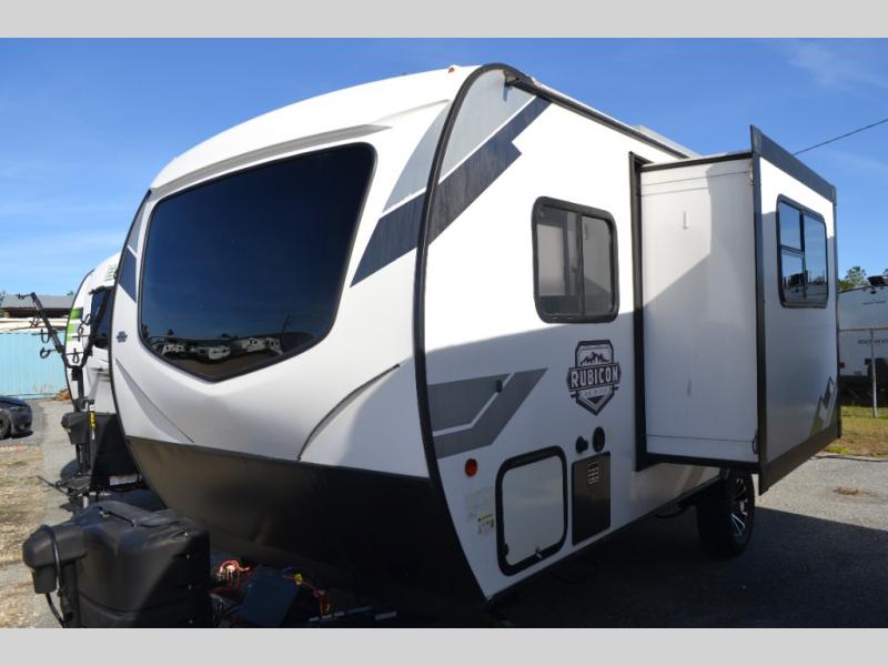 Each one of these Dutchmen RV Coleman Rubicon travel trailers come with more standard features for a valuable trip! They are constructed with strong frames and sturdy walls with insulation while staying at a light enough weight to be towed by most vehicles. Underneath the linoleum flooring is a layer of HyperDeck flooring, an aluminum frame with block foam insulation, another layer of HyperDeck flooring, a powder coated steel I-beam frame, and a fully enclosed underbelly to protect your units vitals. The soul of the RV consists of an upgraded kitchen package with a black stainless steel farm style sink, solid entry steps that are easy to expand and store away, and a fiberglass cap with windshield that creates a sleek automotive design and adds natural lighting throughout the inside. Come find the right model for you today!