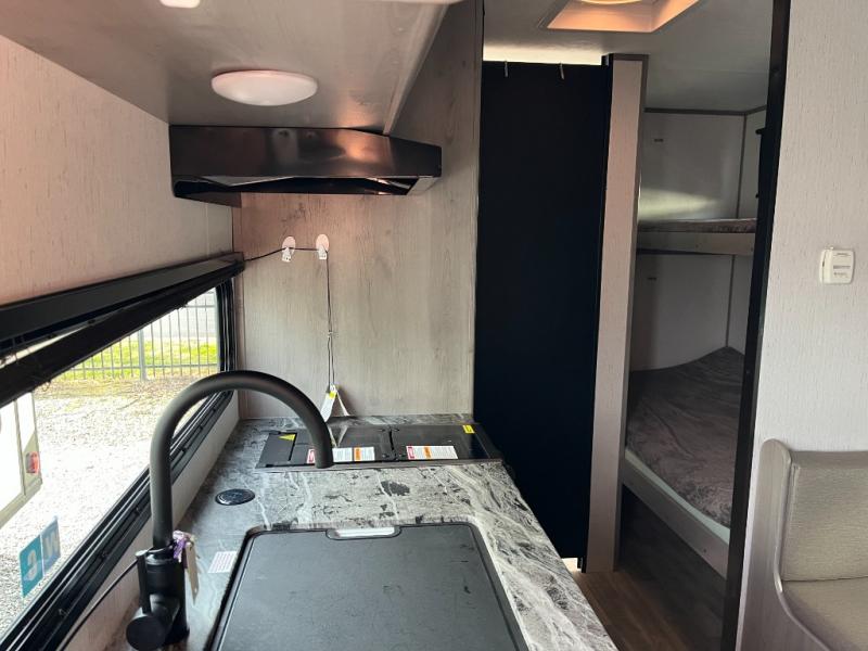 The private bed provides a comfortable place to rest after a long day of exploring, with storage nearby to keep your gear organized and out of the way. Meanwhile, the rear bunk beds are perfect for kids, friends, or storage when not in use — giving you maximum flexibility for travel plans and overnight stays.