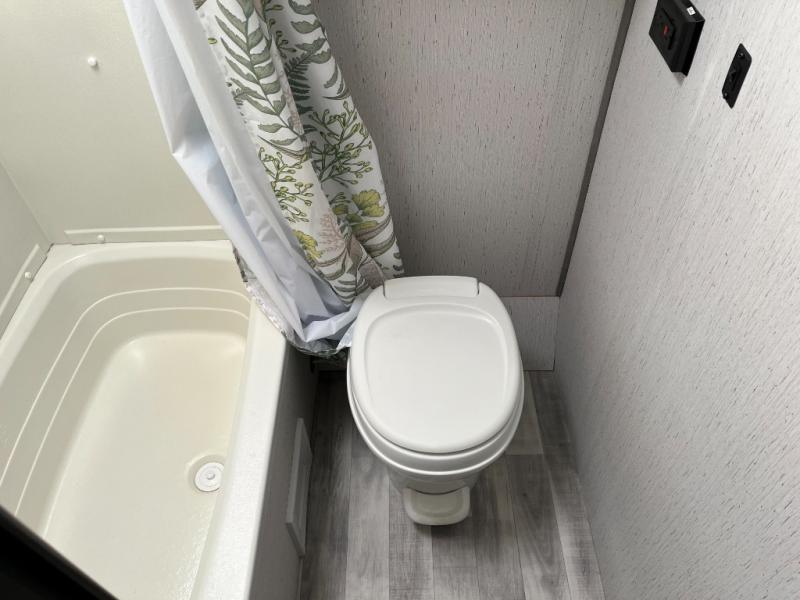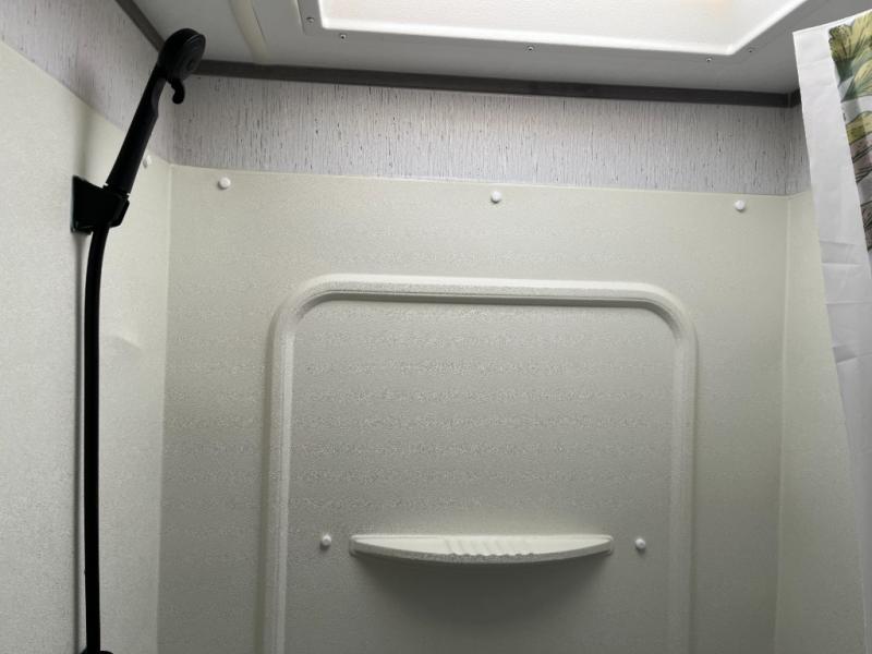 Shower, toilet, and vanity bring convenience and privacy on every trip.