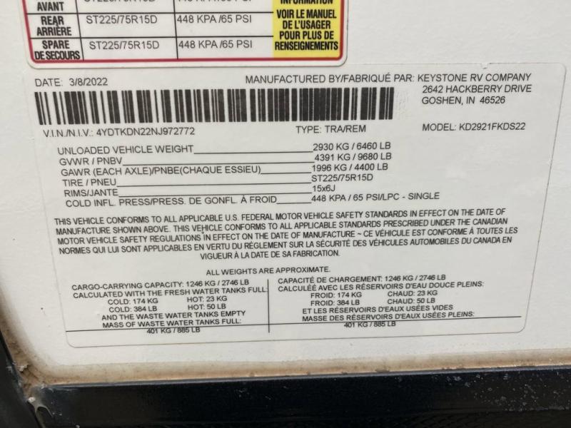 Used 2022 Dutchmen RV Kodiak 2921FKDS Travel Trailer