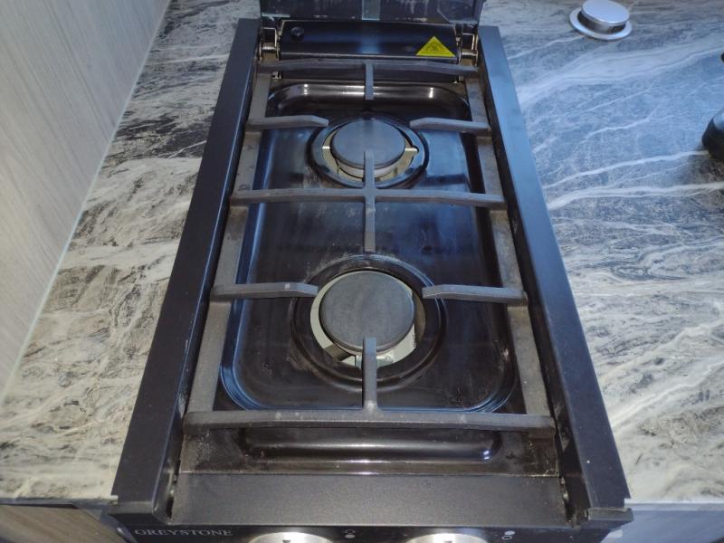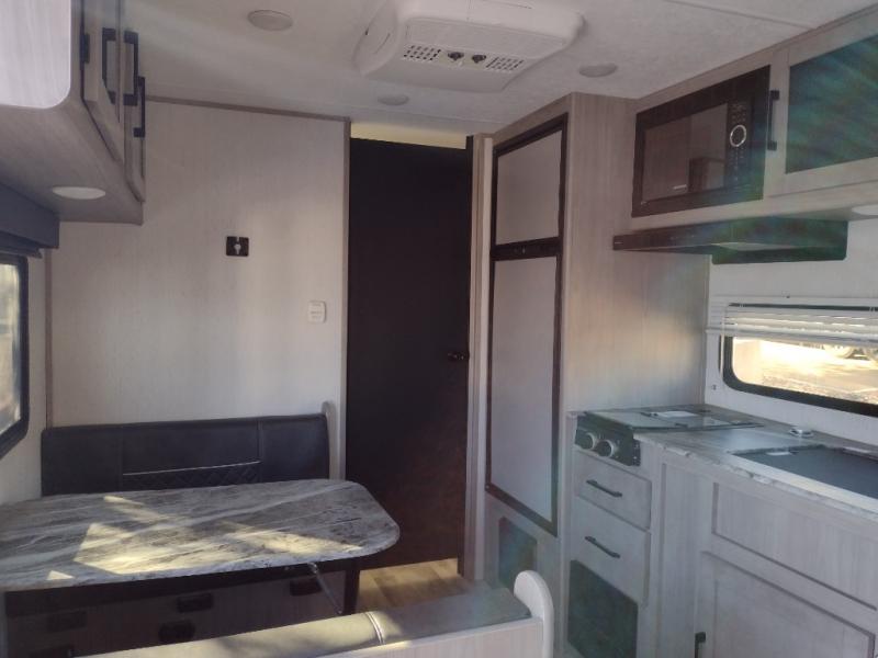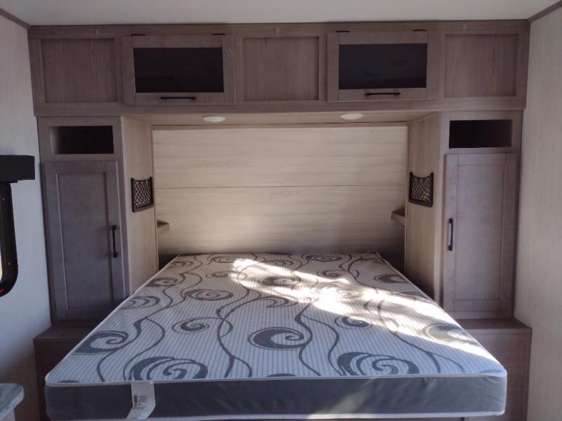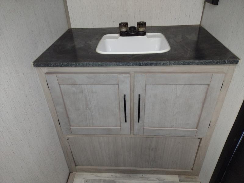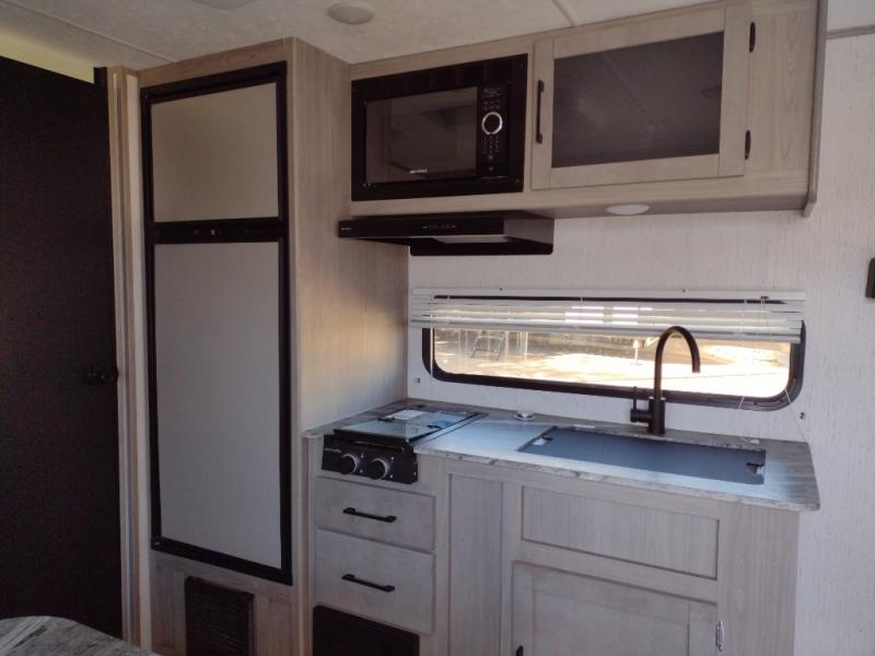 This travel trailer is perfect for two people wishing to escape the hustle and bustle of everyday life! There is a front queen bed with USB ports, nightstands on either side, and wardrobes on either side to keep your clothes looking their best. You can prepare your best meals with the two burner range with a glass cover, keep your orange juice fresh in the 6 cu. ft. stainless steel refrigerator, and enjoy your meals at the booth dinette with an indoor/outdoor table. Freshen up each morning in the full rear bathroom with a skylight above the shower for added natural lighting and a view of the beautiful sky as you clean up!