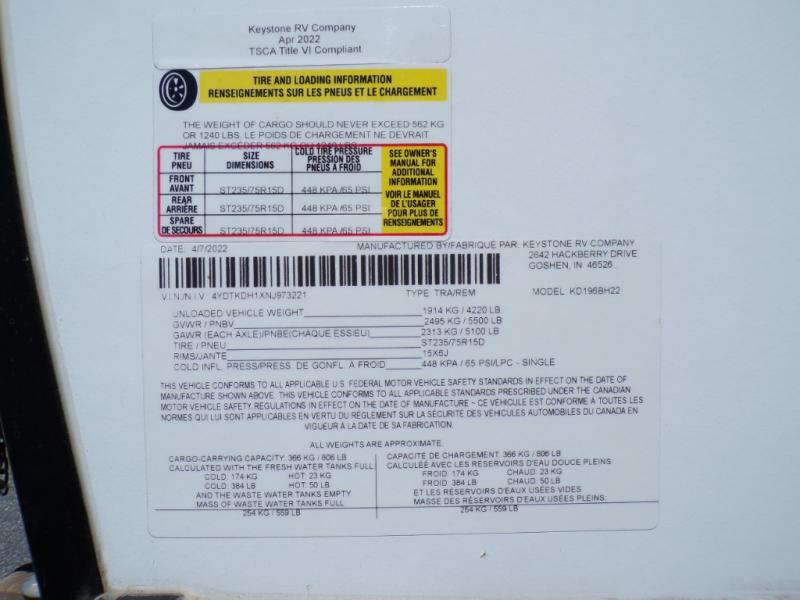Dutchmen Kodiak Cub travel trailer 196BH highlights: