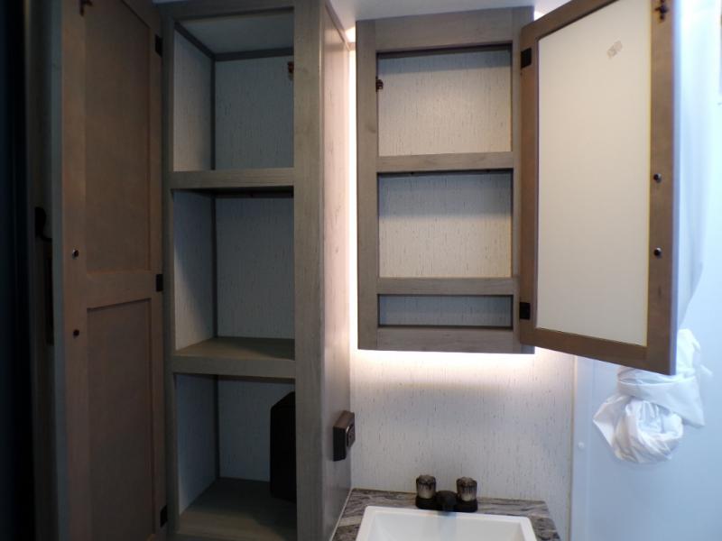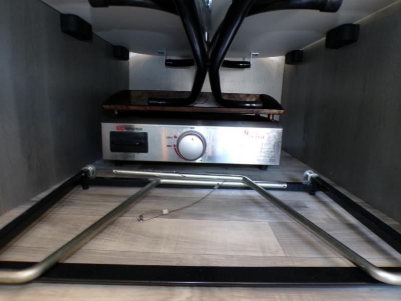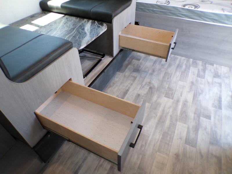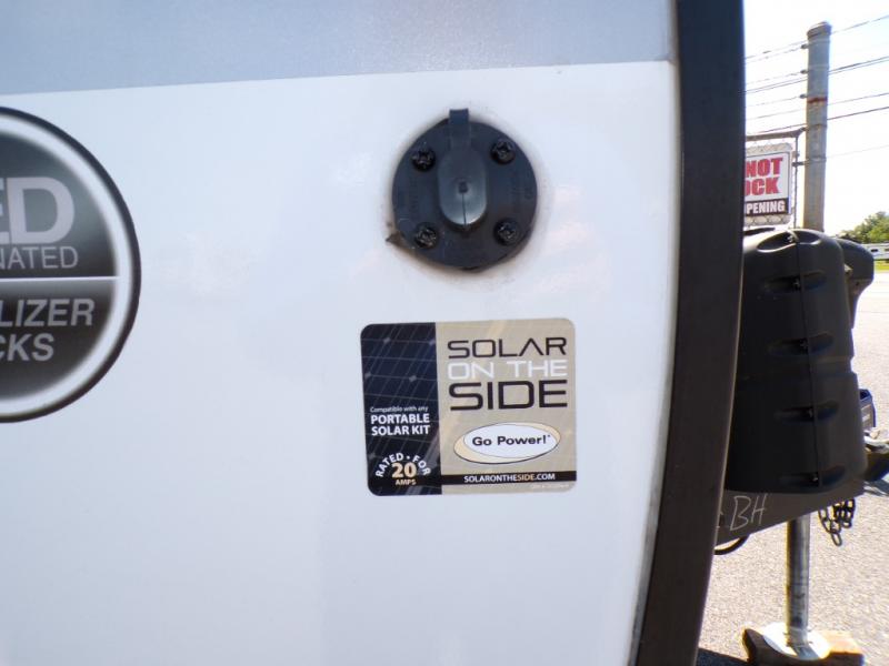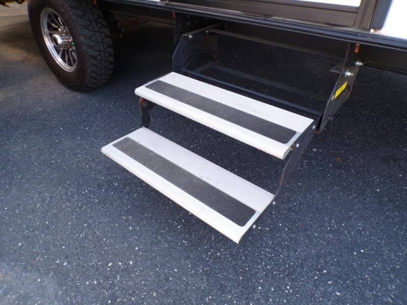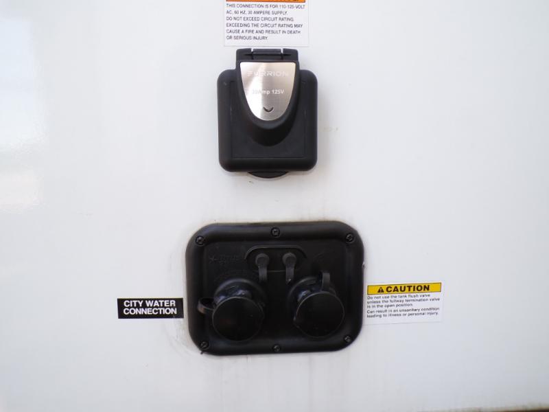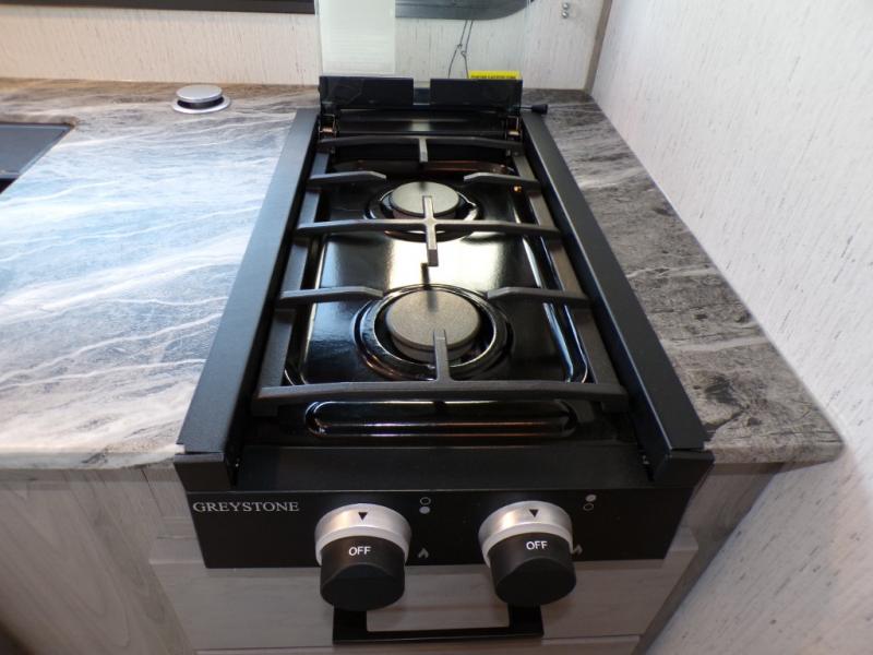 You can go camping with the whole gang in this travel trailer! The kiddos or guests can sleep on the set of bunk beds and you can sleep on the front queen bed which has USB ports to charge your electronics. Start each morning with a full belly after frying up some bacon and eggs on the two burner range with glass cover and enjoy them at the booth dinette with an indoor/outdoor table slide. You could even prepare your meals at the outdoor kitchen and breathe in some fresh air while you cook. There is also a rear corner bathroom for everyone to freshen up in with a skylight above the shower!
