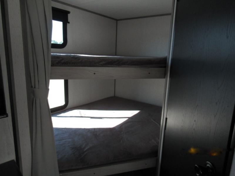 - Double bunk beds in the rear offer spacious sleeping quarters for kids or guests, ensuring everyone has a cozy place to rest.