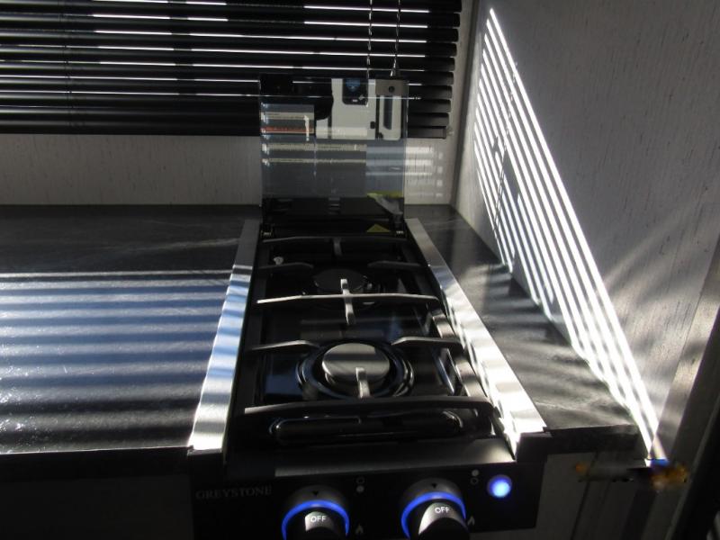 - Fully stocked kitchen with a three-burner stovetop, microwave, dual-basin sink, and a refrigerator offers all the tools you need to prepare meals on the go.