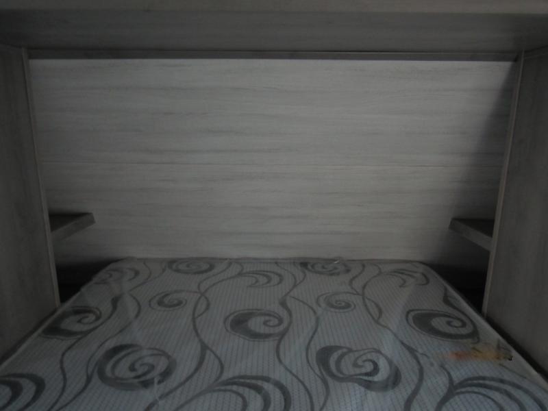 - The front queen-sized bed provides a private retreat with ample storage underneath, plus overhead cabinets for personal items.