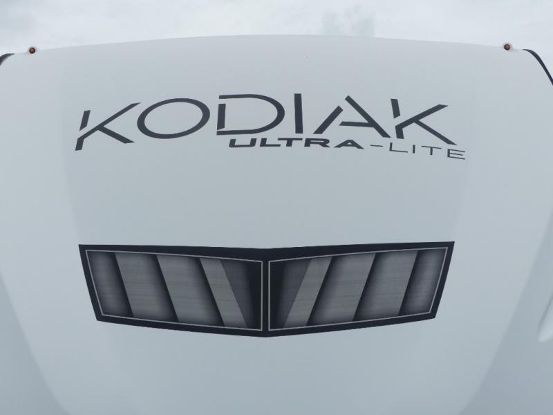 Each Kodiak Ultra-Lite travel trailer by Dutchmen includes a laminated crown roof, aluminum framing, and bear cage construction for a lightweight, yet durable RV. The HyperDeck flooring features fiberglass reinforced polypropylene, a higher density foam core, and a steel powder coated main frame. Head indoors to find seamless countertops, night shades throughout, and USB ports for your electronics. These travel trailers come with a power tongue jack and power stabilizer jacks for easy set-up, and easy lube axles to ensure smooth towing. Since the Kodiak Ultra-Lite is prepped for WiFi 4G LTE you can choose to get some work done while you're away from home, and you might even want to add the 32" LED TV available on some models!