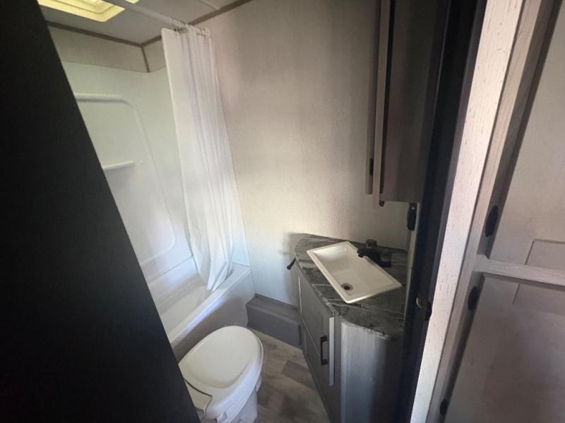 If you're looking for a lightweight travel trailer with more sleeping space, your search is over with this Kodiak Ultra-Lite. When you arrive at the lake, set up the 18' power awning with LED lights, then grab the fishing poles from the pass-through storage. When you return with your catch, you can cook it on the outside kitchen, then head indoors to freshen up in the full bath. The little ones may want to take a rest on the double-size bunks, while the adults enjoy the queen bed up front. This model includes plenty of storage space, including a pantry in the kitchen for snacks!