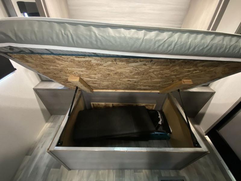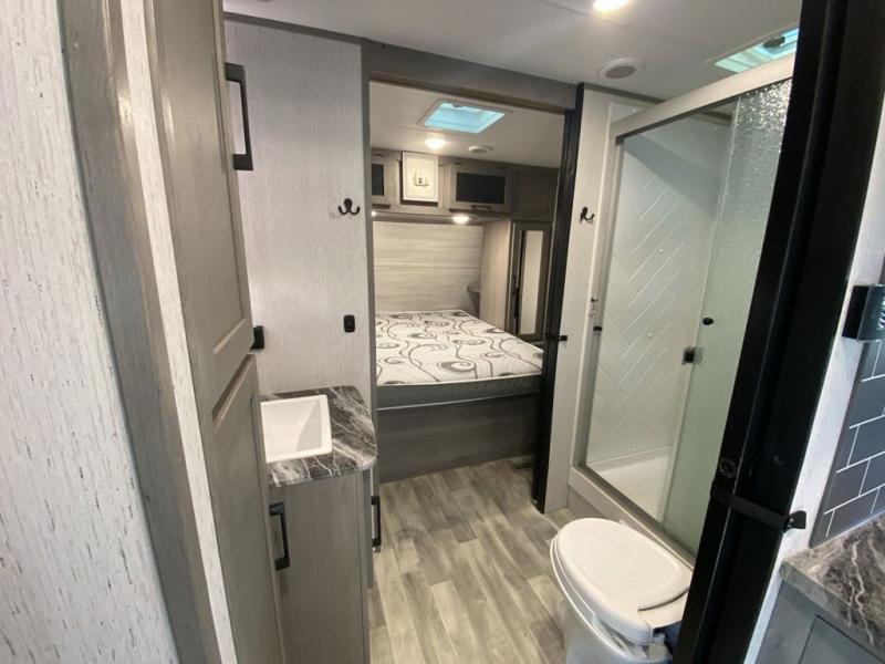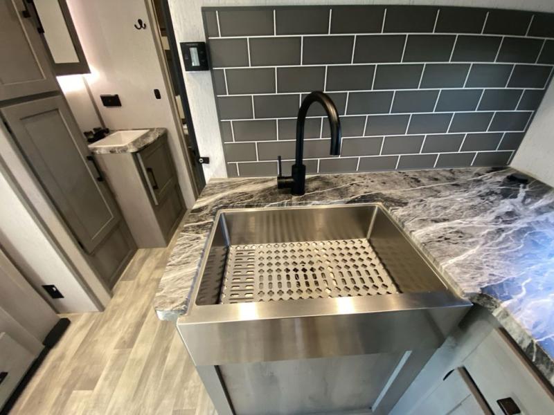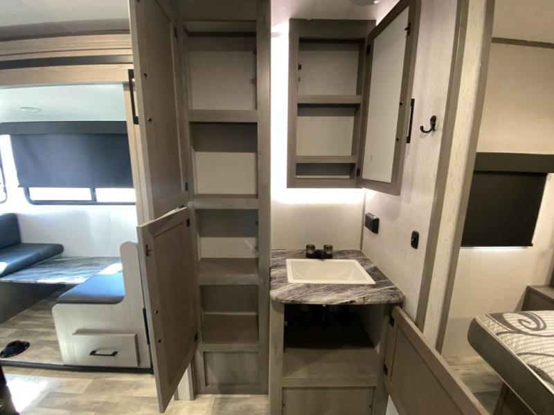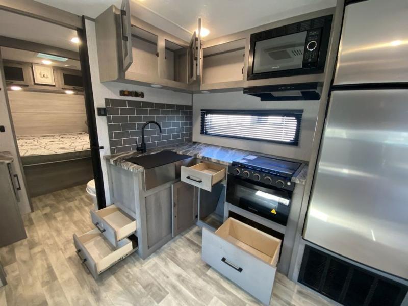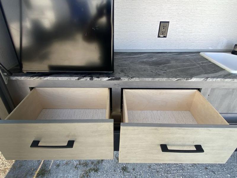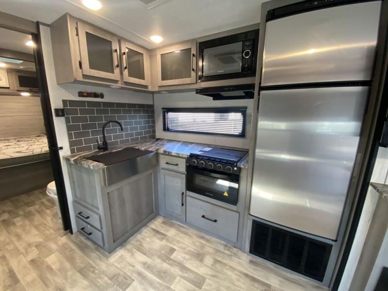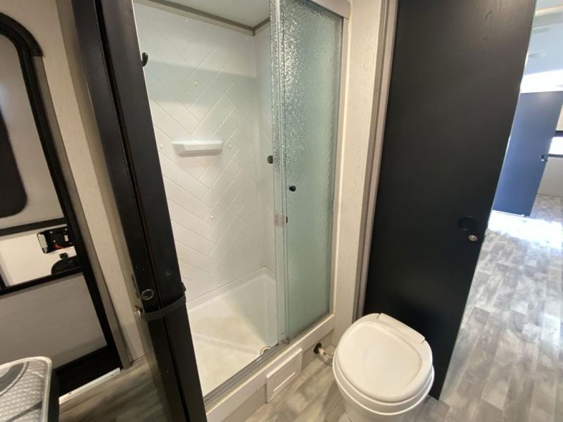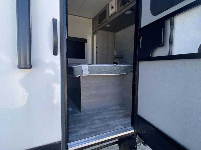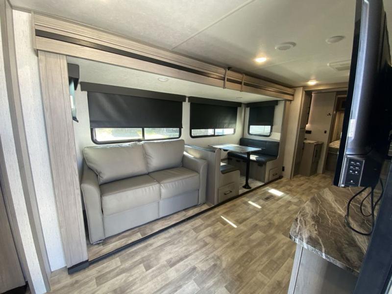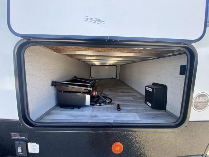 It will be so easy camping with friends in this spacious travel trailer with double slides and a rear private bunkhouse. Once you're set up at the campsite, prepare lunch on the outside kitchen and relax under the 18' power awning with LED lights. You may just decide to grab the fishing poles from the pass-through storage and head down to the river. Everyone can meet in the main living area around the U-shaped dinette or on the sofa, and the fireplace here will make it feel more like home.
