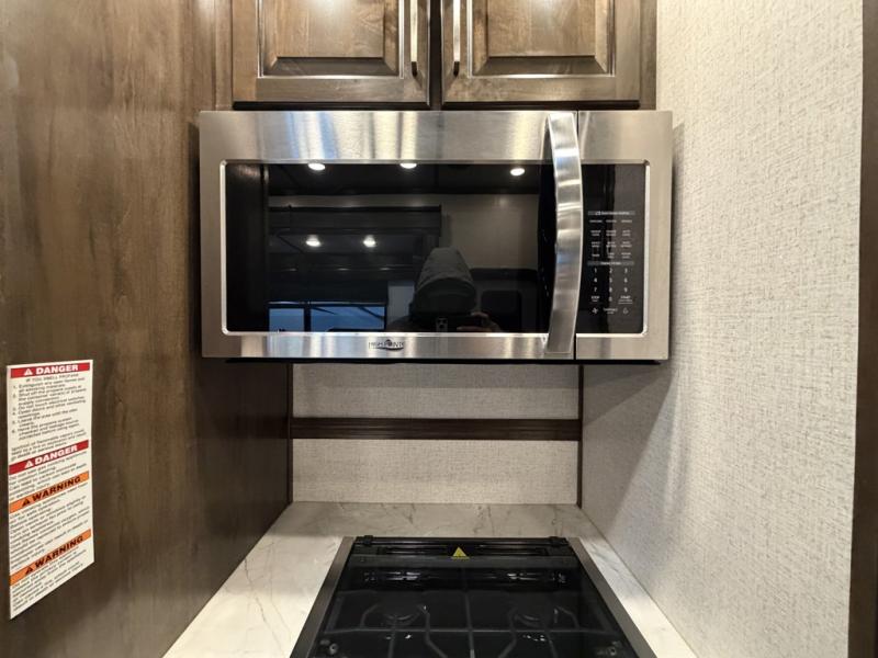 With any Voltage Triton toy hauler fifth wheel by Dutchmen you will appreciate the economical price point while still including many luxury features. The 7' slide boxes provide you with space to stretch out, plus there are oversized windows to let the sun through each morning. Some of the other interior comforts you are sure to love are the pleated night shades throughout the entire coach, the stainless steel kitchen sink, the upgraded heat and massage sofas, and more. Each model includes a 30" residential microwave, a 12 gallon water heater, plus two upgraded A/C's to keep you cool all summer long. The Triton garage is ready to house your favorite toys with 2,500 lb. tie-downs and a Tuff Ply floor, and you can add the optional ramp door patio system for more fun. You will also enjoy the two indoor/outdoor speakers, plus a pull down screen to keep the bugs out when you want to dine at the table.