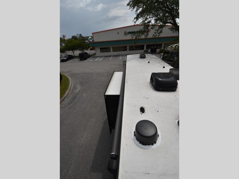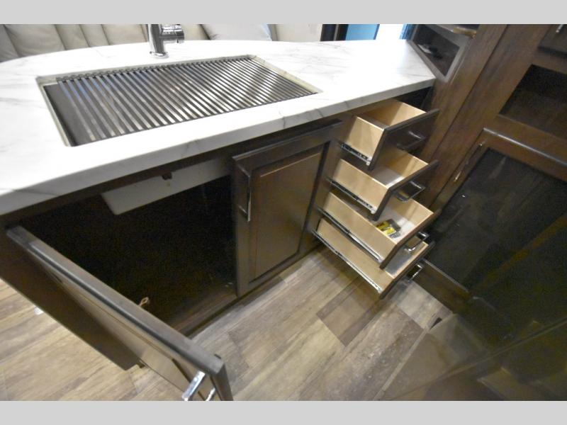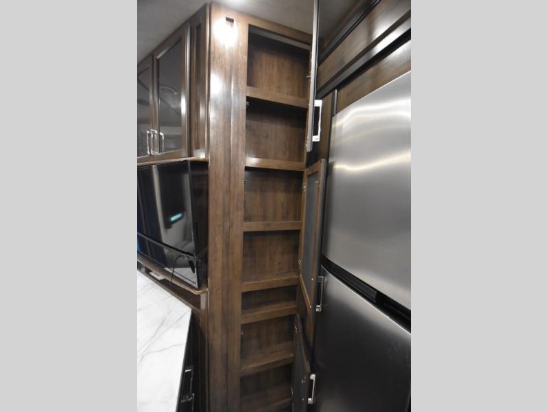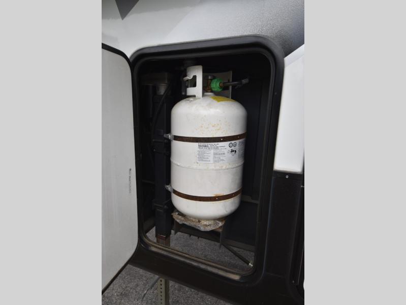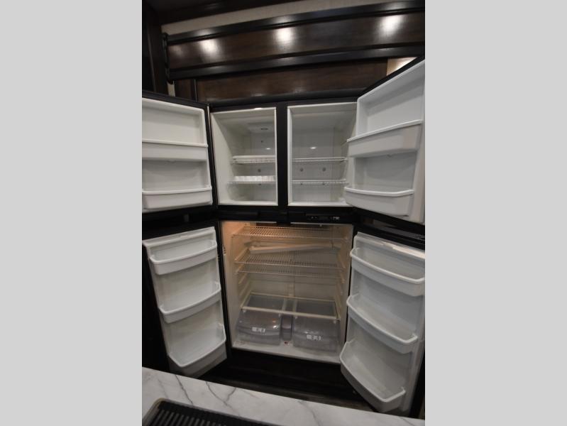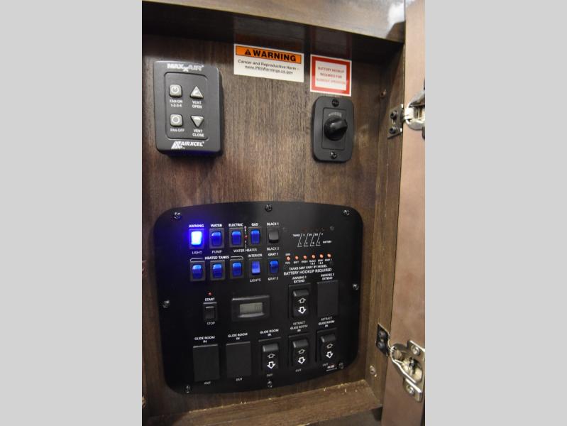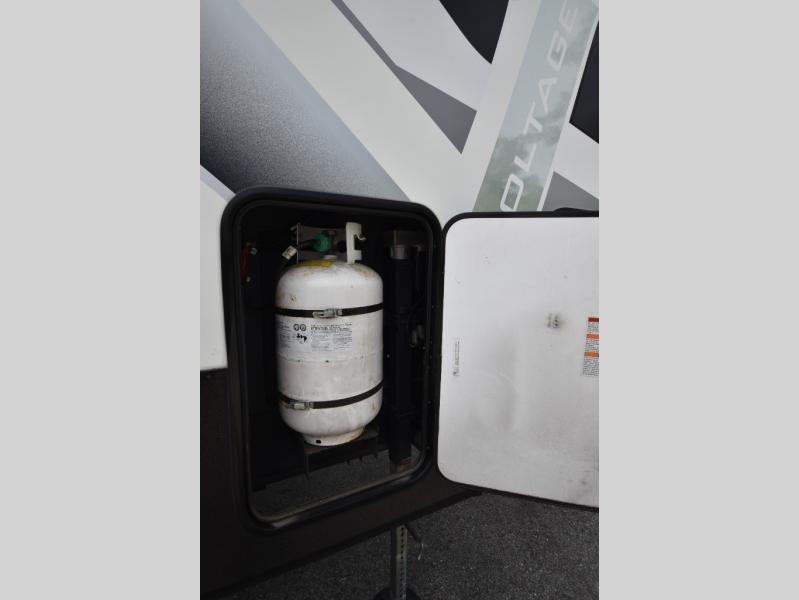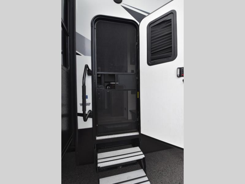 With any Voltage Triton toy hauler fifth wheel by Dutchmen you will appreciate the economical price point while still including many luxury features. The 7' slide boxes provide you with space to stretch out, plus there are oversized windows to let the sun through each morning. Some of the other interior comforts you are sure to love are the pleated night shades throughout the entire coach, the stainless steel kitchen sink, the upgraded heat and massage sofas, and more. Each model includes a 30" residential microwave, a 12 gallon water heater, plus two upgraded A/C's to keep you cool all summer long. The Triton garage is ready to house your favorite toys with 2,500 lb. tie-downs and a Tuff Ply floor, and you can add the optional ramp door patio system for more fun. You will also enjoy the two indoor/outdoor speakers, plus a pull down screen to keep the bugs out when you want to dine at the table.
