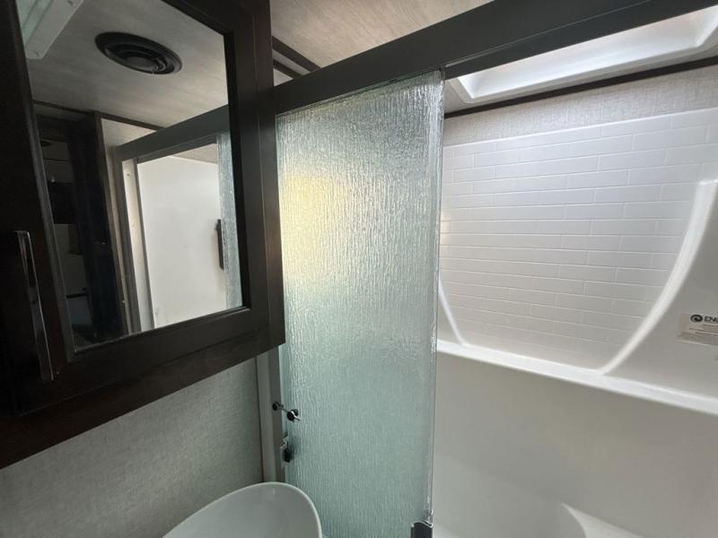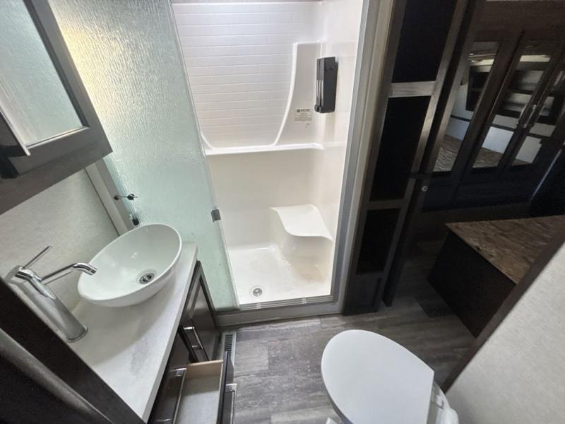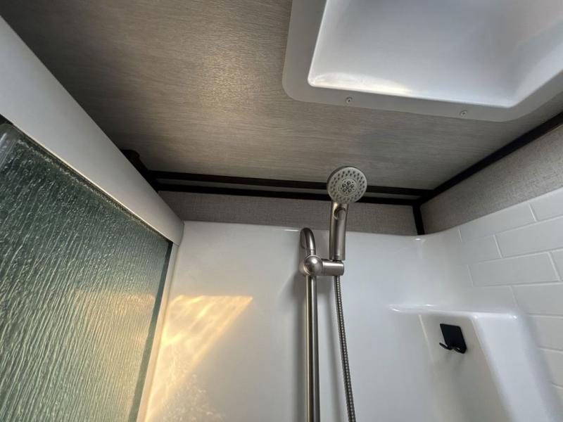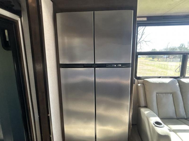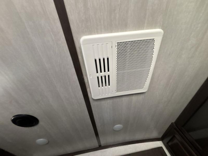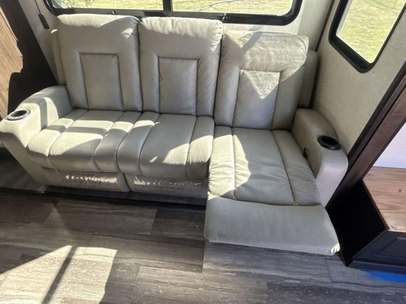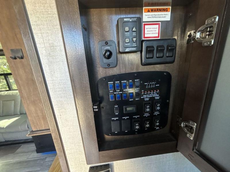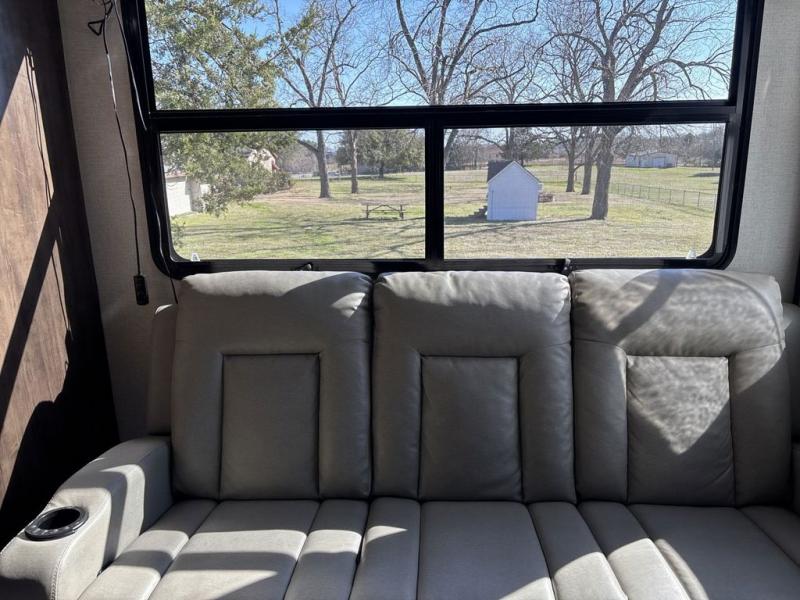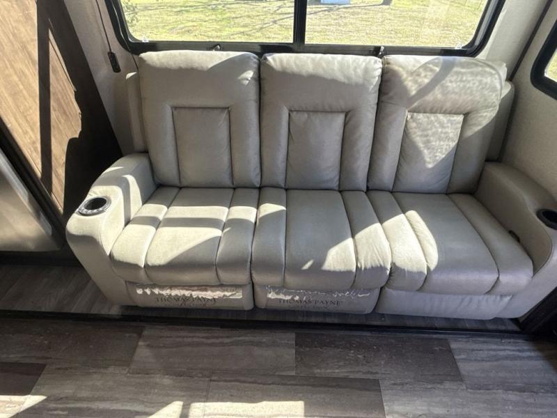If you're ready to take luxurious vacations, grab this Voltage toy hauler! It offers you an upscale interior outfitted with all of the latest technology, like a USB charging station, a 50" LCD HDTV, a garage TV, a fireplace, and a Happi-Jack power bunk. Two entry doors give you easy access to this unit, and an outside kitchen makes it possible for you to cook two meals at once. You'll also love the convenience of having a full and half bathroom, and the heated/massaging residential sofas in the main living area are going to be the perfect relaxation spot.