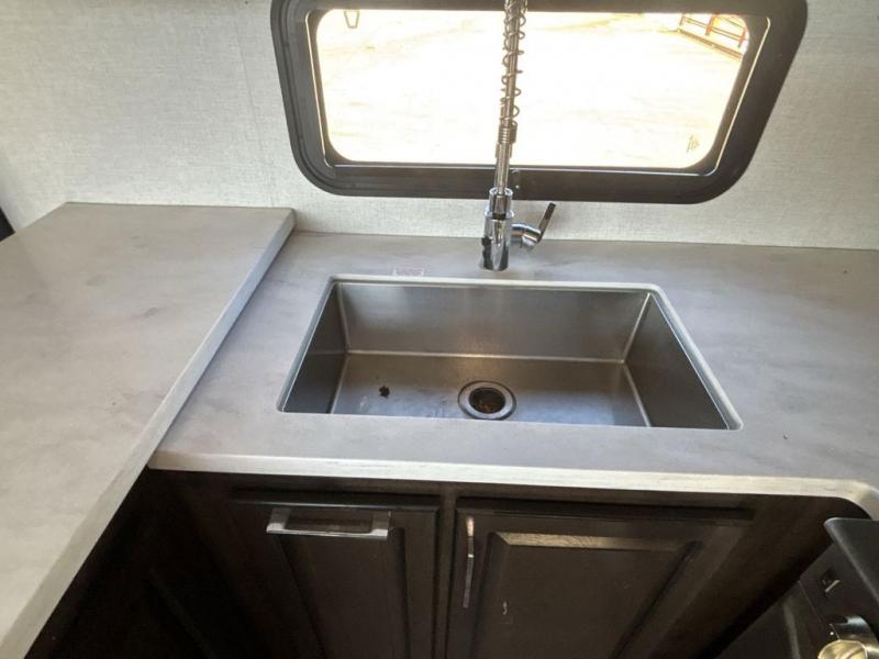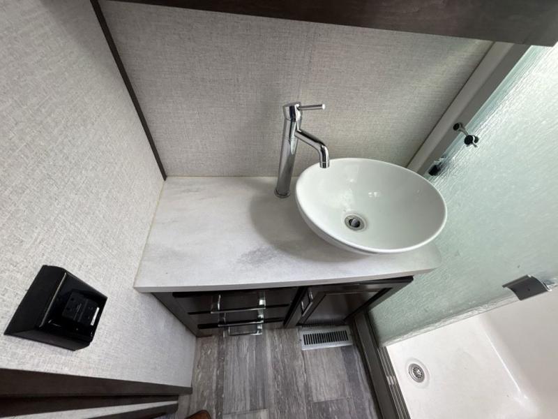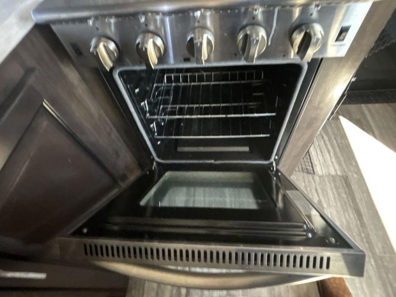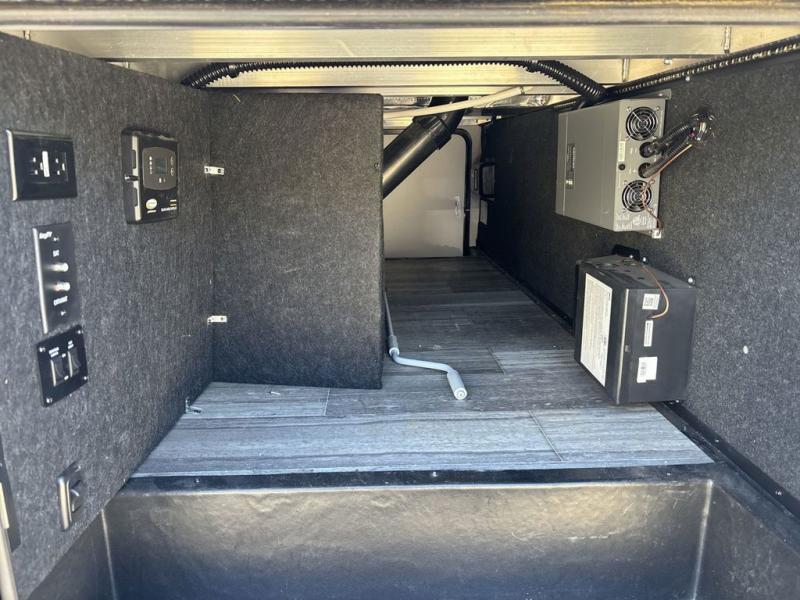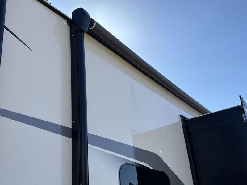 The Dutchmen Voltage toy hauler is an amazing RV that won't disappoint! These elegant units have more durability and luxury than you ever thought possible. They include an All Weather Package, 16" custom wheels, a gel-coat fiberglass exterior finish, MorRyde CRE 3000 suspension, Secure Stance entry steps, and a second fuel tank for a total of 60 gallons. There is a second power awning over the garage entry door, and you will even find a third awning above the ramp patio. The tinted frameless windows will protect you from outside prying eyes and harsh sunlight, and the interior solid-surface countertops in the kitchen will withstand many years of chopping and dicing. You'll also have a 12" diamond plate in the garage for protection, and there is an aluminum four-step entry that leads right into the garage.