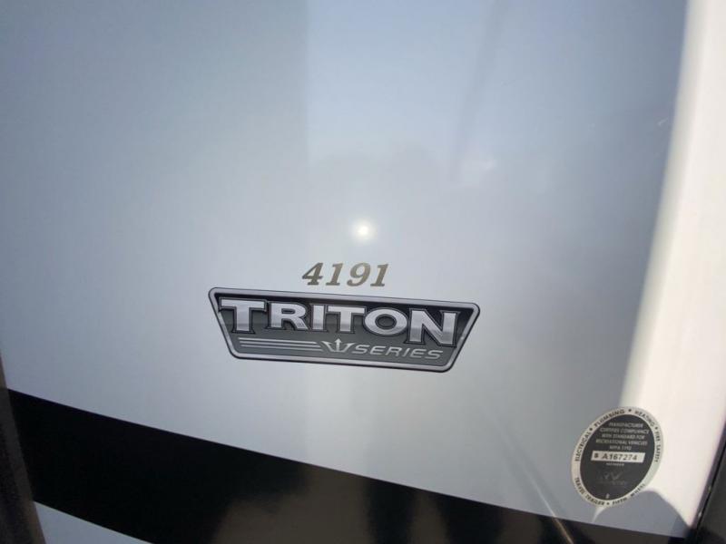 With any Voltage Triton toy hauler fifth wheel by Dutchmen you will appreciate the economical price point while still including many luxury features. The 7' slide boxes provide you with space to stretch out, plus there are oversized windows to let the sun through each morning. Some of the other interior comforts you are sure to love are the pleated night shades throughout the entire coach, the stainless steel kitchen sink, the upgraded heat and massage sofas, and more. Each model includes a 30" residential microwave, a 12 gallon water heater, plus two upgraded A/C's to keep you cool all summer long. The Triton garage is ready to house your favorite toys with 2,500 lb. tie-downs and a Tuff Ply floor, and you can add the optional ramp door patio system for more fun. You will also enjoy the two indoor/outdoor speakers, plus a pull down screen to keep the bugs out when you want to dine at the table.