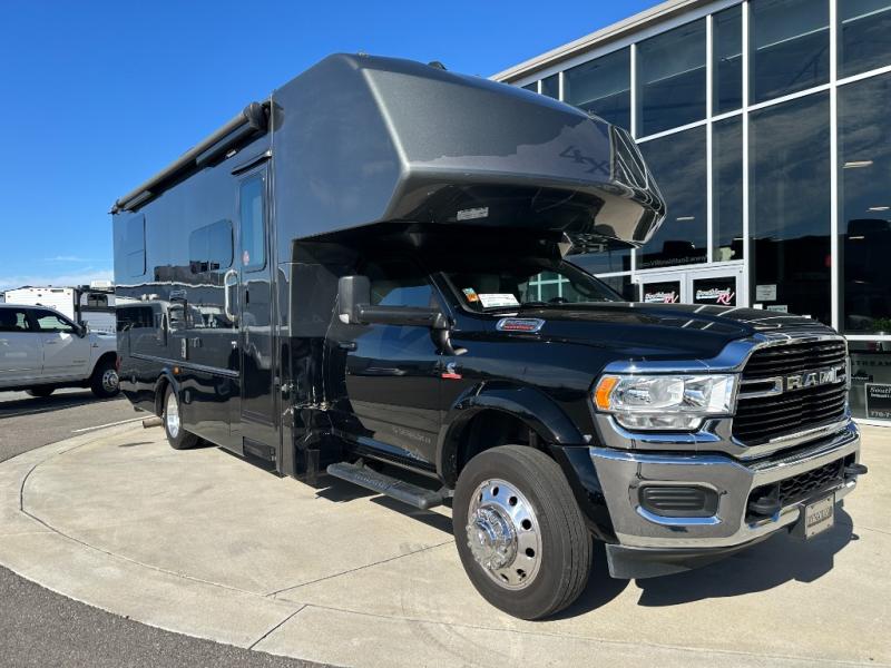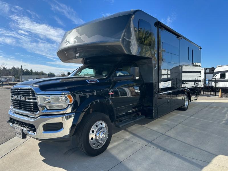 Each one of these Dynamax Isata 5 Super C diesel motorhomes offer control, comfort, and stability thanks to the Ram 5500 SLT chassis with factory 4-wheel drive! They are powered by a Cummins 6.7L I6 turbo diesel engine and an AISIN HD 6-speed automatic transmission. Their construction consists of 2" aluminum-framed, laminated sidewalls with block foam insulation, gel-coat fiberglass walls with Azdel backing, and a composite flooring substrate that is lightweight and moisture resistant. You will see their attention to detail everywhere you look including ambient lighting, premium cut and buffed paint finish, and a water filtration system for clean water where ever you go. They even have two 100 watt solar panels with a 30 amp controller so you can go off the grid. Come check out your favorite model today!