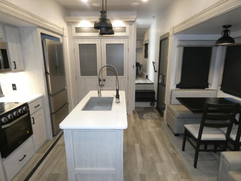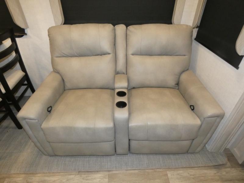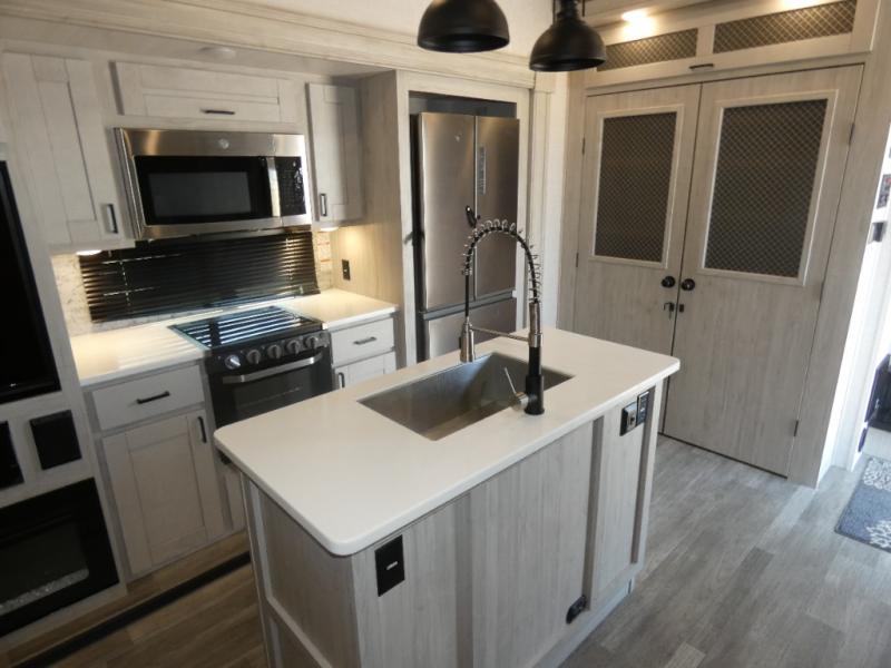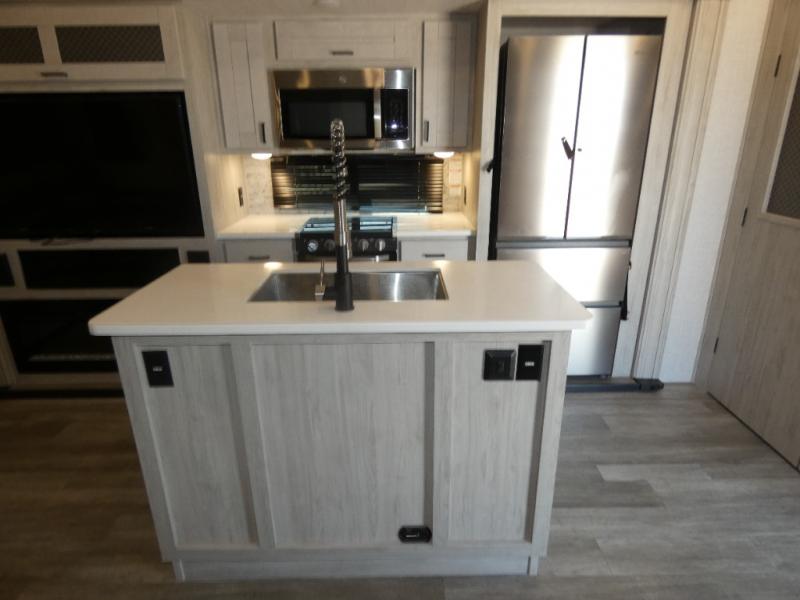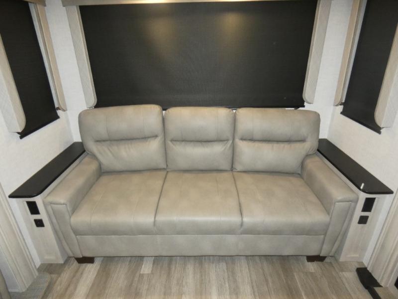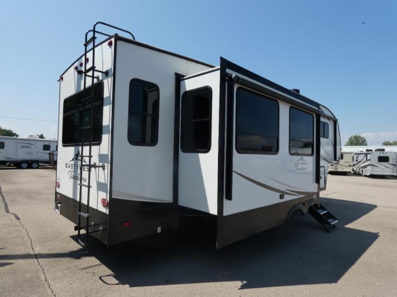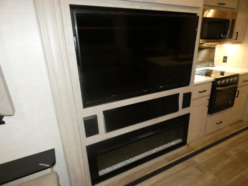 If you're ready to enjoy some luxury at an affordable price, choose this Tandara fifth wheel! The opposing slides will keep the interior feeling open and spacious so that you can enjoy some time in the theater seating. As you relax, you can watch the 50" LED TV across from you, and the fireplace below the TV will provide some extra ambiance. You'll enjoy your own private bedroom to sleep in each night, and the king-size bed is going to be ultra comfortable. There is even under-bed storage where you can keep some extra belongings. The four-burner range in the kitchen is going to be unbelievably helpful when you have a lot of food to prepare for breakfast in the morning.