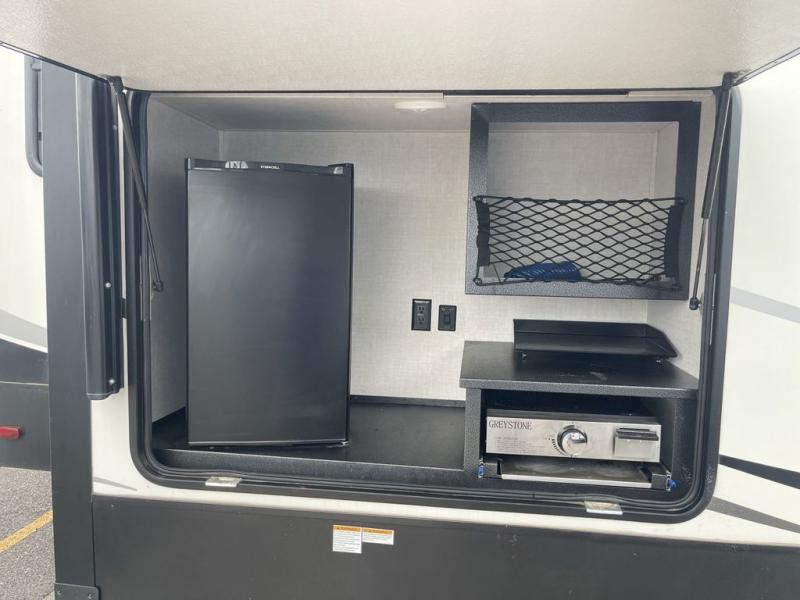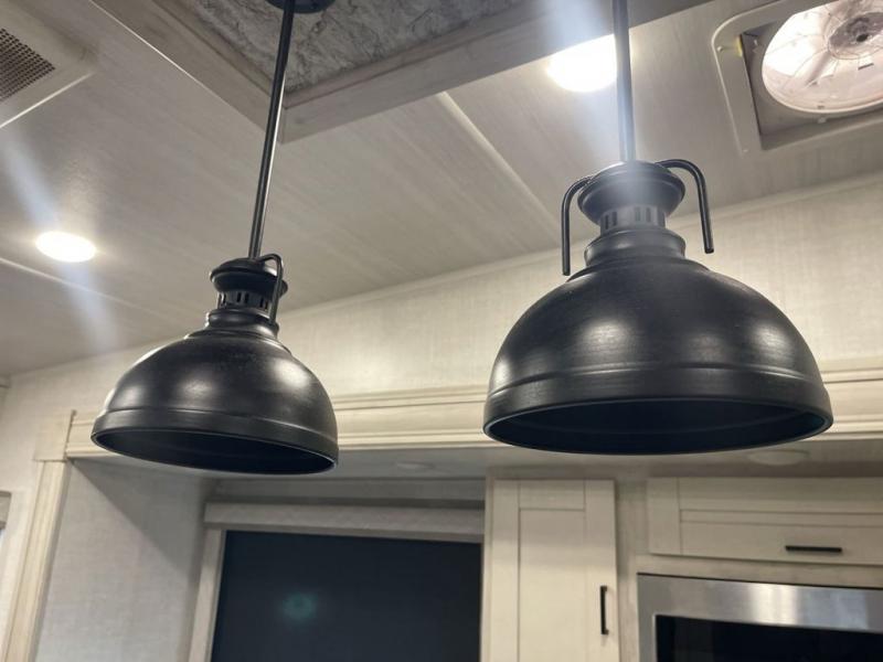 Take this Tandara fifth wheel out to the campsite and experience luxury while you camp! You will have a master suite that is quite impressive with its full-width wardrobe, king bed slide, under-bed storage, and private entrance into the dual-entry bathroom. The kitchen island is easy to gather around while you're cooking dinner or enjoying a late-night snack, and the hide-a-bed sofa will be comfortable for lounging or sleeping. As you spend time outside under the two electric awnings, you can grab some extra charcoal or camping chairs from the oversized pass-through storage.