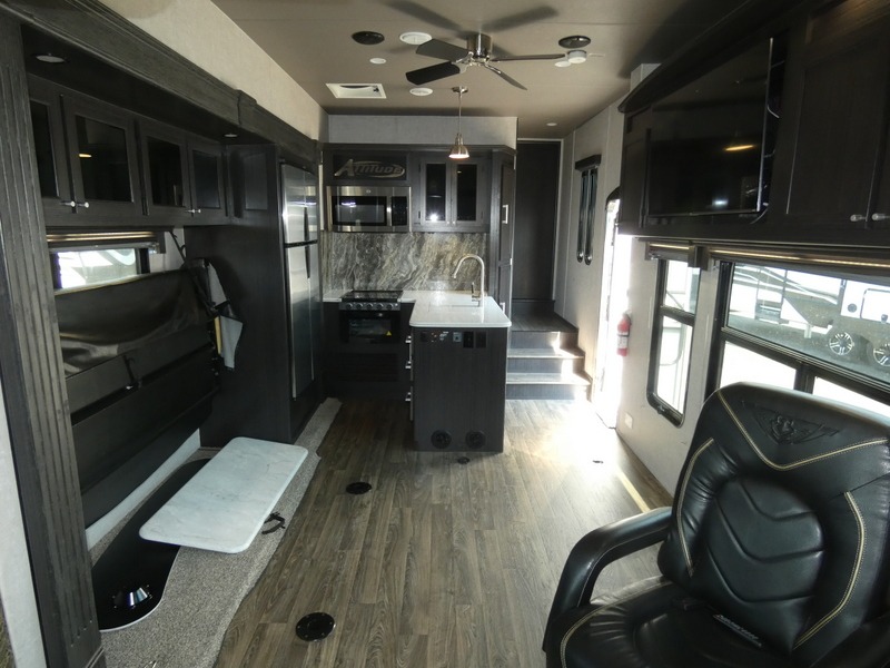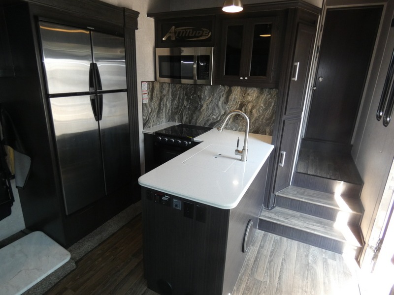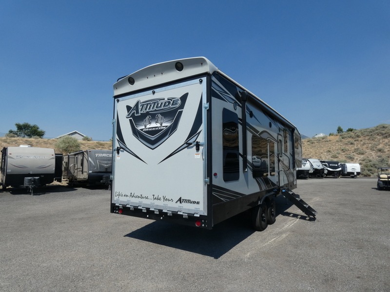 With each Eclipse Attitude Wide Lite toy hauler you begin with a powder coated chassis with laminated, aluminum framed fiberglass sidewalls and fiberglass caps with the front cap having an LED light, and a decked walk-on roof. The 100 AMP lithium LiFePO4 battery/210 watt solar panel, the 40 gallon fuel station, and the 4.0K Onan generator with transfer switch will keep everything up and running when you venture off-grid. The Hi Rez LED lights, the curbside under glow LED lighting and the Hi Def exterior graphics offer the attitude you are looking for! Make your selection today!