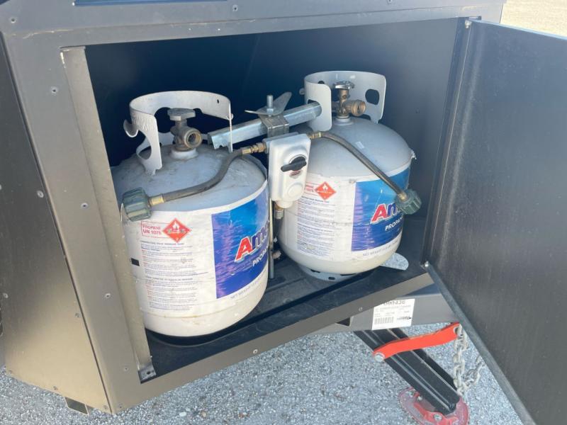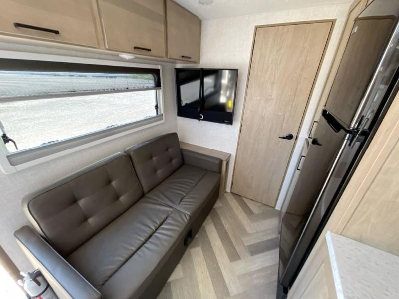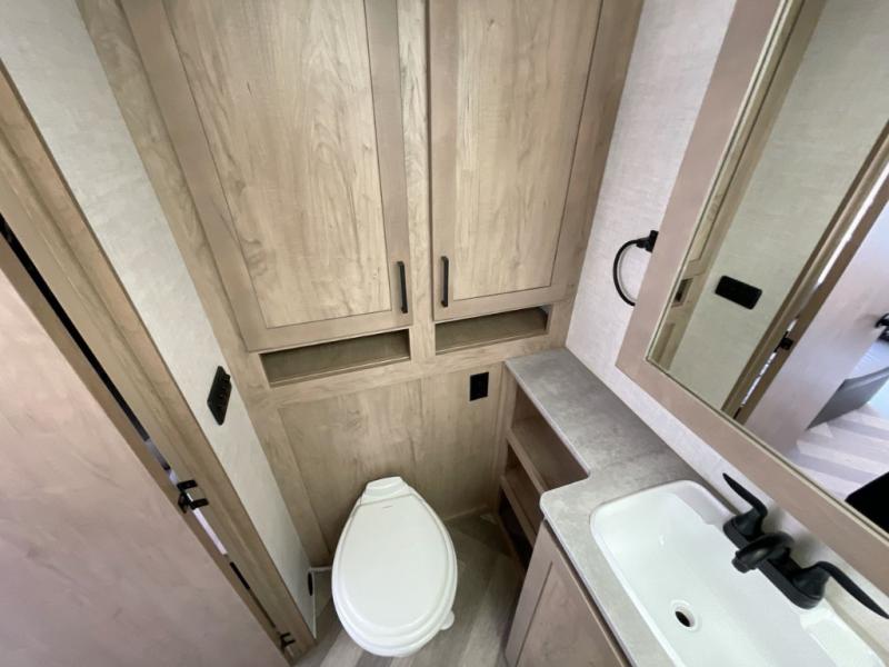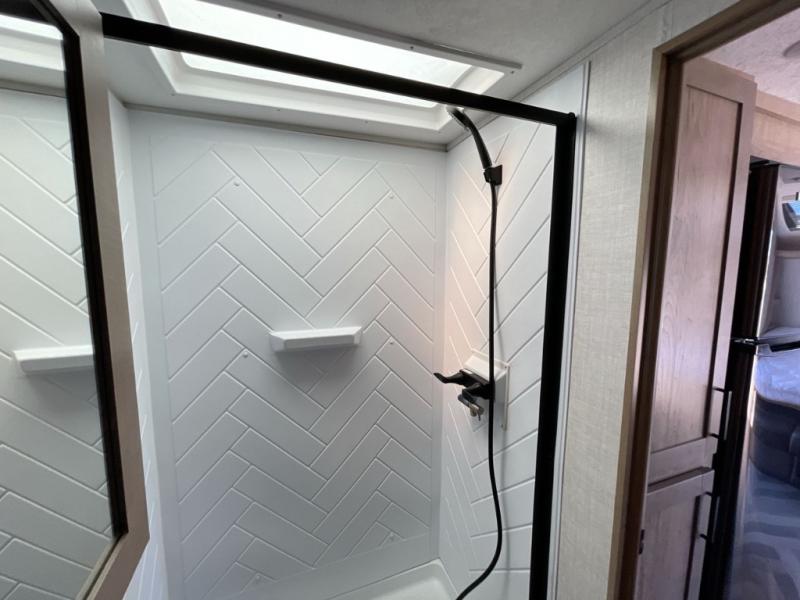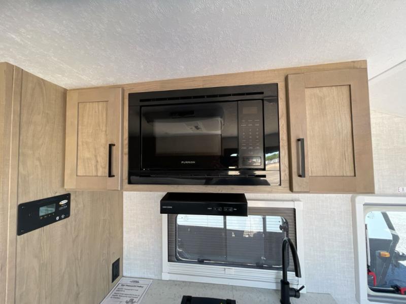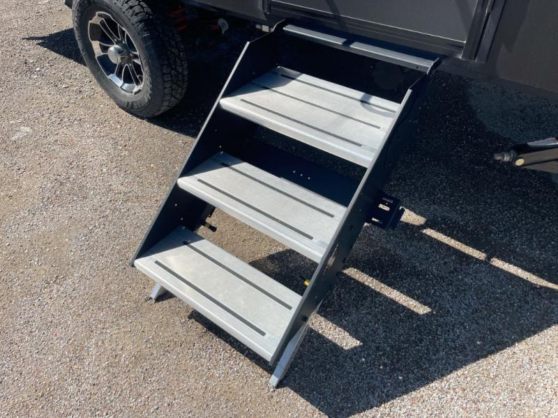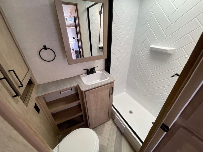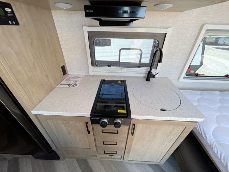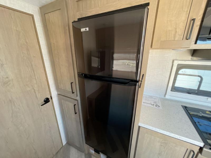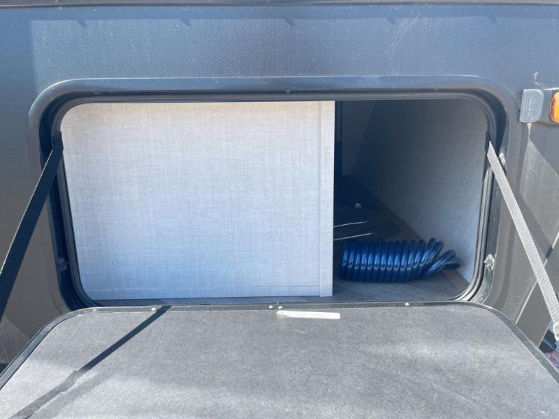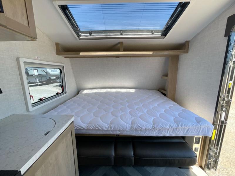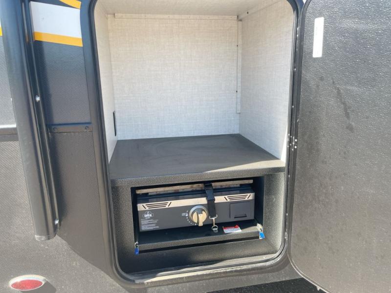 Go off-grid camping in comfort with this travel trailer! It features a full rear bathroom with a 24" x 40" shower to clean up in after a day of exploring and there is a wardrobe/linen closet to keep your towels close by as well. You can prepare your best meals with the two burner cooktop and 8 cu. ft. refrigerator, then enjoy them at the jackknife sofa with a removable table which is across from a 12V HDTV/AV system with a hidden wardrobe behind it. Store all of your outdoor gear in the exterior pass-through storage areas and stay protected by the 12' electric awning with dimmable LED light while you cook at the outside kitchen which has a 1.6 cu. ft. refrigerator and an optional griddle. When you're ready to wind down your nights, lay down on the front 60" x 80" Murphy bed and admire the beautiful stars through the "Stargazer" skylight!