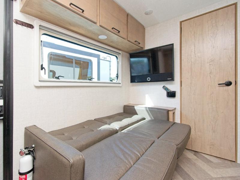 Step inside to find stylish Shaw flooring, European dual-pane acrylic windows with integrated shades, and the EmberLink Smart RV Control System—giving you full control at your fingertips.