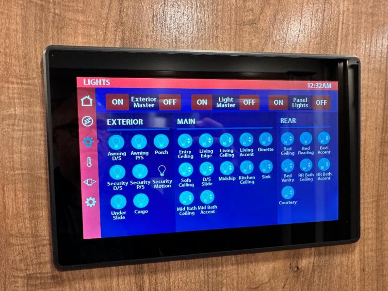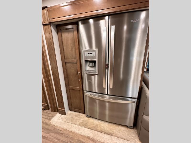 Four slides for tons of space, a full bath plus a half bath, and sleeping space for five make this coach a dream come true. Once you arrive at the campground, set up the power patio awnings while the kids ride their bikes. Everyone will enjoy the exterior 43" TV, plus there are three more TVs inside as well. Prepare lunch on the induction cooktop, or use the Whirlpool convection microwave. The kitchen also includes a Fisher and Paykel dishwasher, a deep drawer for a waste basket with an easy access trash chute, and a residential refrigerator with ice and water in the door. Mom and dad will sleep soundly on the slide out king bed, while the kids take the hide-a-bed sofa or the second sofa. Family vacations just got sweeter in this Aspire motorhome!