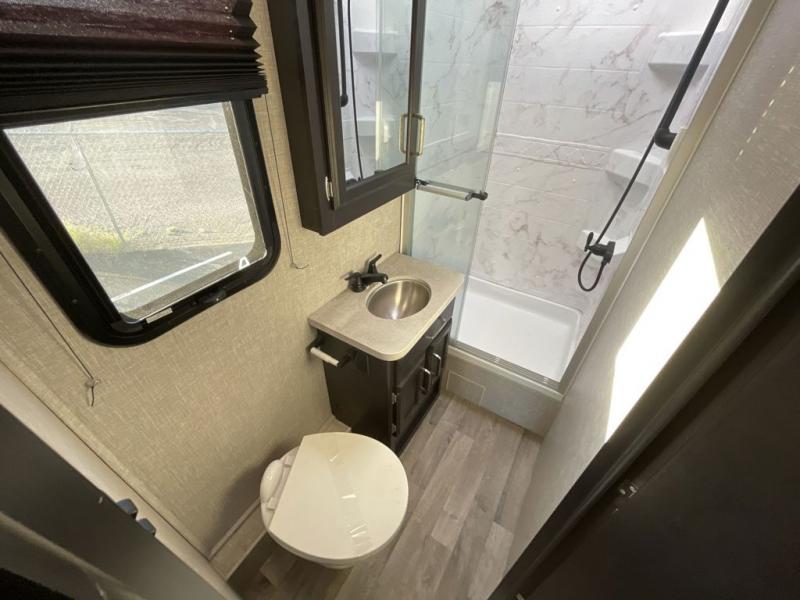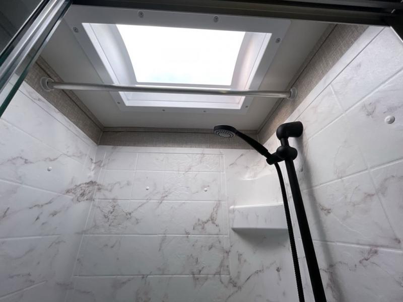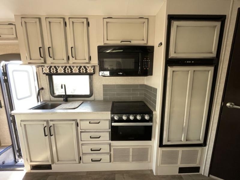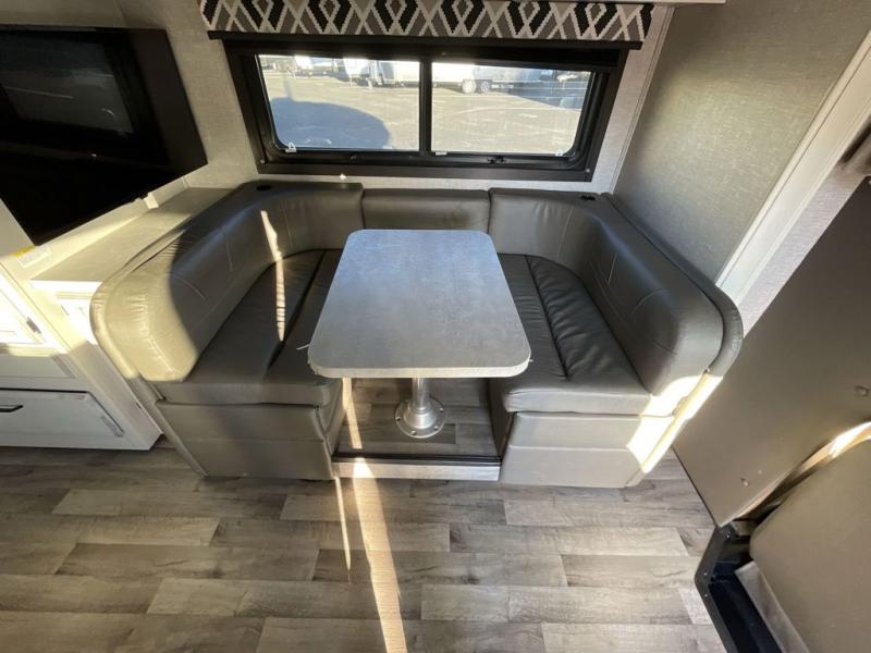 With any Odyssey Class C gas motorhome by Entegra Coach, the driver will appreciate the power from the 350 HP engine, the towing capacity from the 7,500 lb. hitch, the Tire Pressure Monitoring system, the navigation from the Sony infotainment center with Apple CarPlay and Android Auto, plus the backup and side-view cameras when parking and driving down the highway. The kitchen offers full amenities including a recessed stainless steel sink with a cutting board sink cover, LED-lite pressed countertops, a decorative backsplash, and a pop-up charging station with 110 outlet and USB plugs to keep your smart phones charged. Get ready for luxury in a Class C, choose your favorite today!