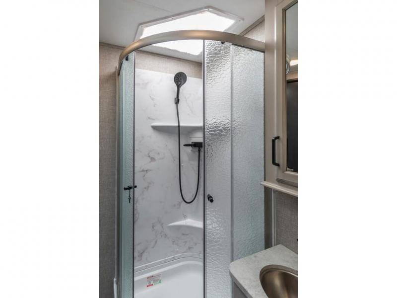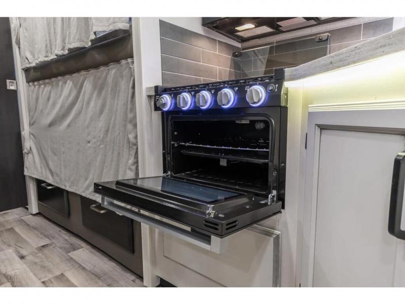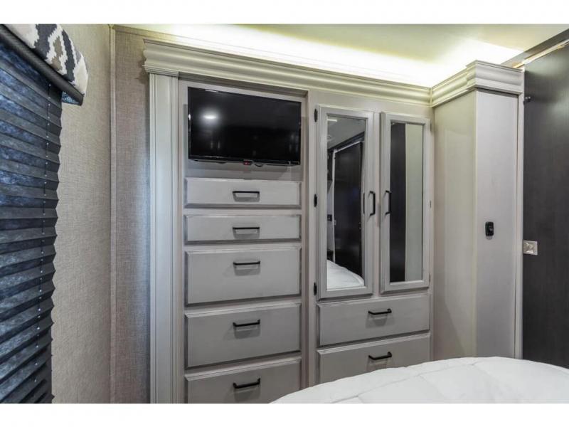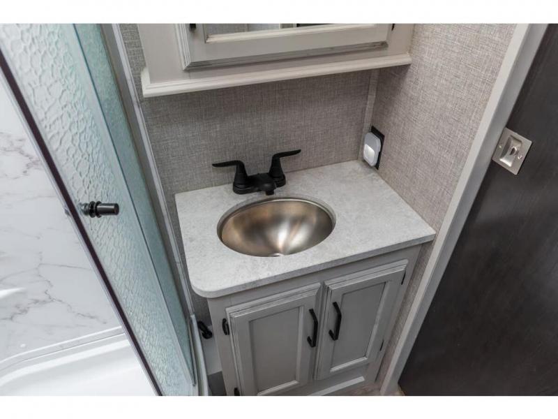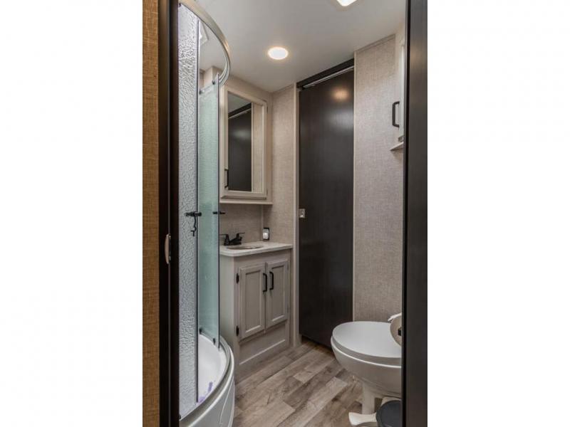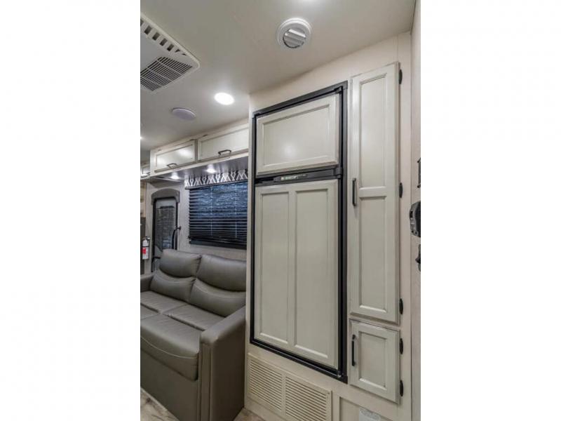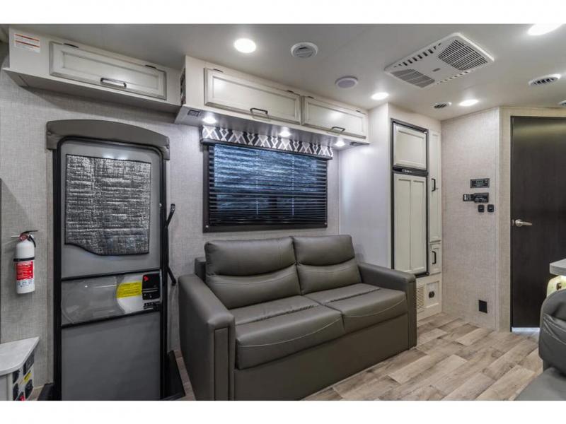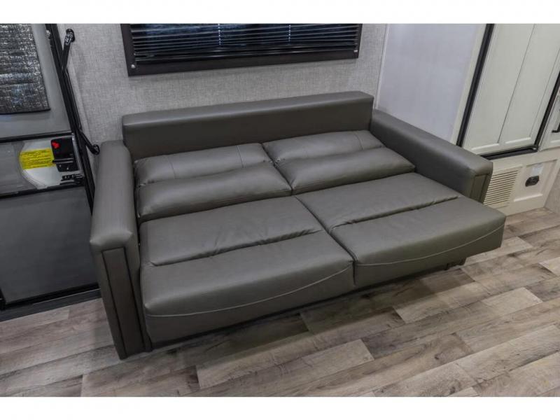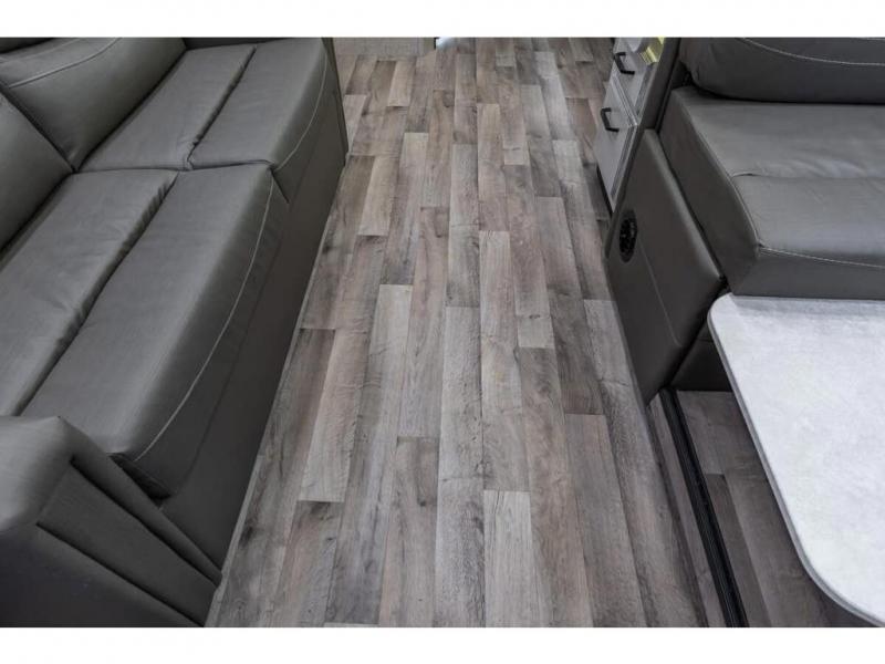 Gather your family and load up for travel games, camping games and all around comfort and luxury! The full-wall slide provides extra floor space from just behind the swivel captains chairs all the way back to the private rear bedroom with a queen bed and clothing storage. The bunk beds are across from the main entry to the bathroom, and your kids or grandkids will love this space as well as the front cab-over bunk. You even have more sleeping space provided by the booth dinette and sofa once easily setup for bedtime. And the cook will have a residential-size microwave, a Furrion all-in-one cooktop and oven, plus an 8 cu. ft. refrigerator to keep everyone fed, and the pantry will hold the snacks. Everyone can also enjoy the 18' electric awning while at the campsite either day or night thanks to the LED lights, and the exterior TV will allow you to watch the big game in the great outdoors.