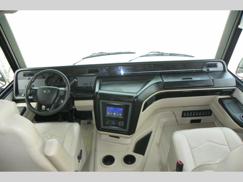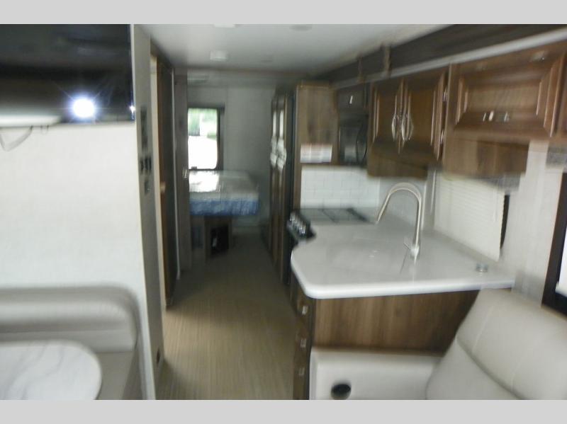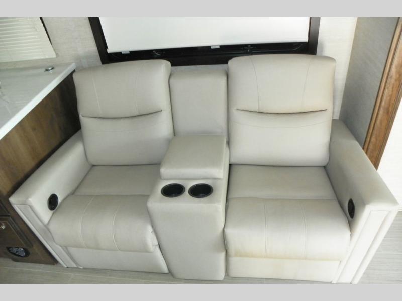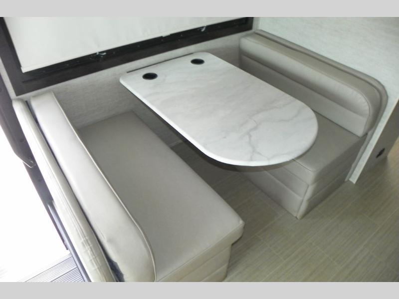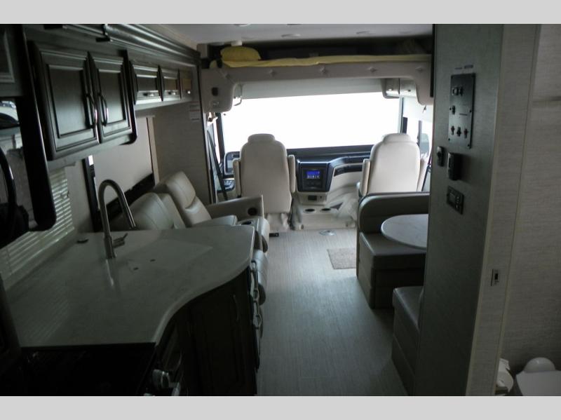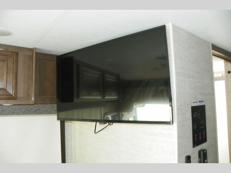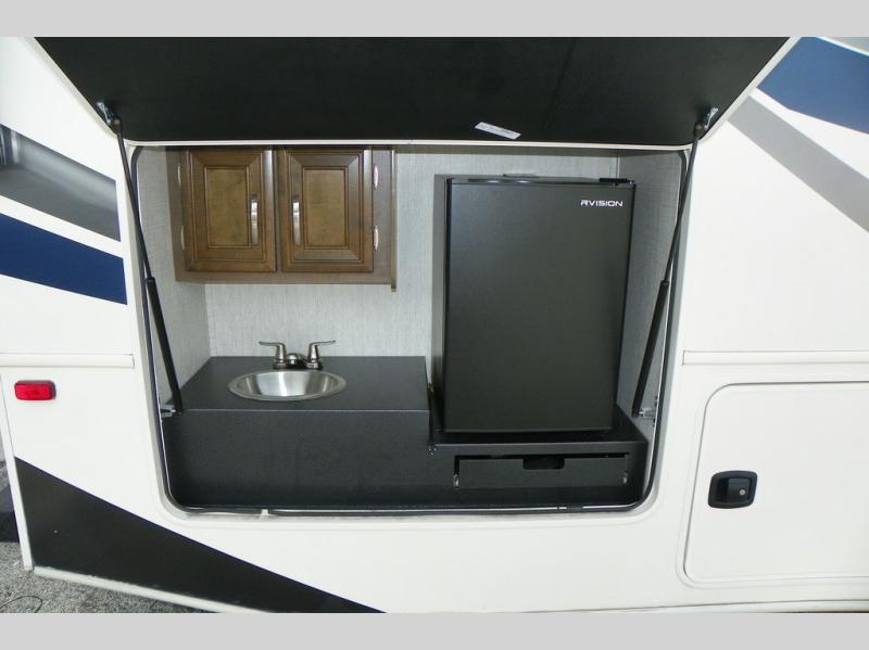 This Vision Class A gas motorhome has excellent interior living space with the full-wall slide! You'll fully enjoy the kitchen and the amenities it provides, like a residential-size microwave, 8-cubic foot refrigerator, Furrion all-in-one cooktop and oven, and pantry. The sofa and booth dinette offer you lounging space after a full day of traveling, and the 39" LED Smart Fire HDTV offers you some entertainment when you don't want to be active anymore. The exterior portion of this coach is also excellently appointed with an outdoor kitchen, exterior entertainment center with LED TV, radio, and speakers, and a 23' electric awning with LED lights. You also have great choices of options for this coach with the optional 12-cubic foot refrigerator, theater sofa, or drop-down overhead cab bunk.