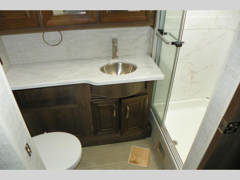 What a vision you'll be cruising down the highway to your next luxurious camping location in the Entegra Coach Vision Class A gas motorhome! With its high-class features, the Vision makes it quite easy to create memorable and lavish getaways. The exterior comes equipped with an electric patio awning with LED lights, an outside shower, an exterior utility center, awnings for the slide outs, lockable pass-through storage compartments, an exterior entertainment center with speakers, LED TV, and single-disc DVD/FM radio, and a 190W solar panel with dual controller. The Girard tankless LP water heater and Onan Marquis Gold Genset generator will provide extra convenience while the water filtration system keeps your water pure and tasting great. The E-Z DRIVE ride and handling package is another feature that is sure to spark your interest as it allows you to drive without much effort. This package includes a computer-balanced driveshaft, jounce bumpers, heavy-duty front and rear stabilizer bars, and SACHS shocks.