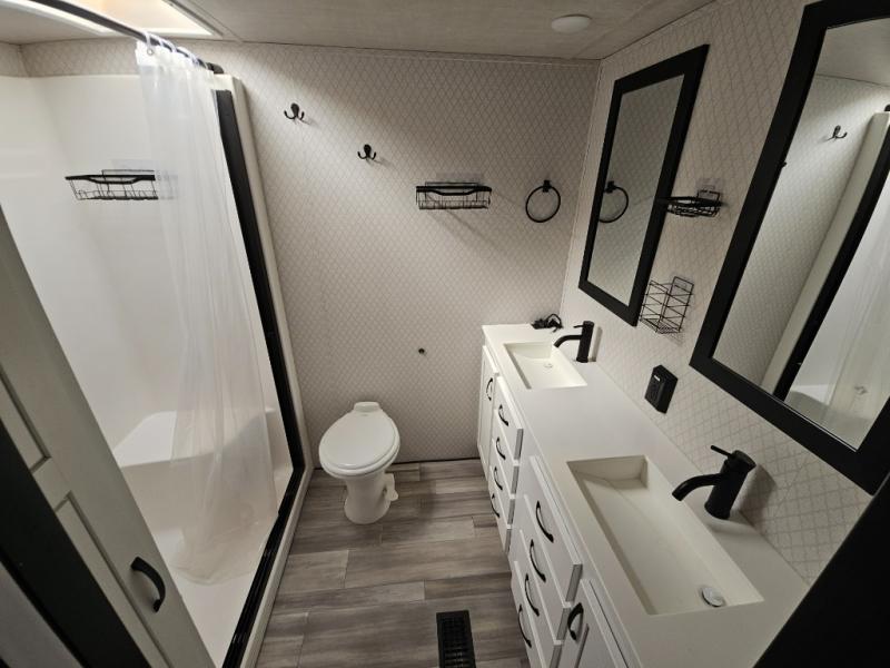 You will have peace of mind camping with any one of these Forest River Cedar Creek fifth wheels or fifth wheel toy haulers! Their aluminum superstructure, high gloss gelcoat exterior, and Dexter heavy duty axles with E-Z lube hubs will outlast all of your adventures. The Silaprene bonded sidewalls resist UV, heat, cold, oils, and highway chemicals with a bond that grows stronger with age while resisting delamination too. With the Vegatouch panel and Firefly dimmer switches, you can have total control of your unit in the palm of your hand. The exterior full docking station has multi-function tank levers, black tank flush, 12V battery disconnect, and an outside shower to keep the dirt where it belongs. The congoleum flooring throughout not only makes you feel right at home, but is also easy to clean. Come find the right model for you today!