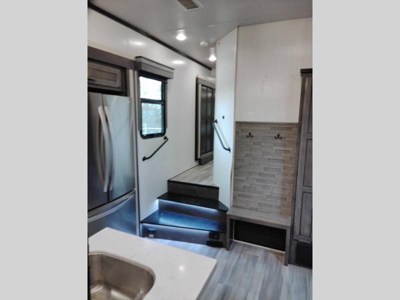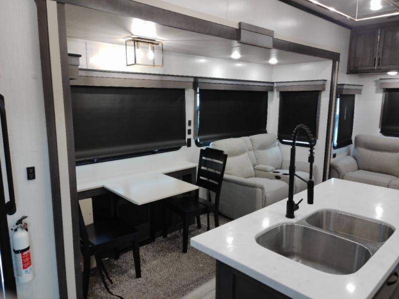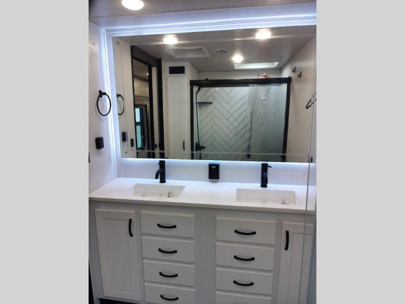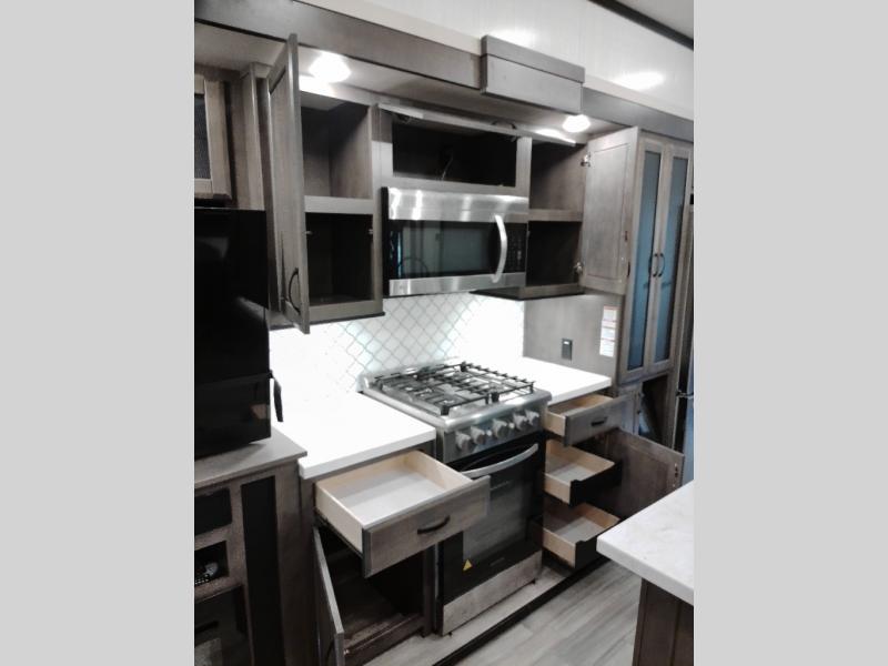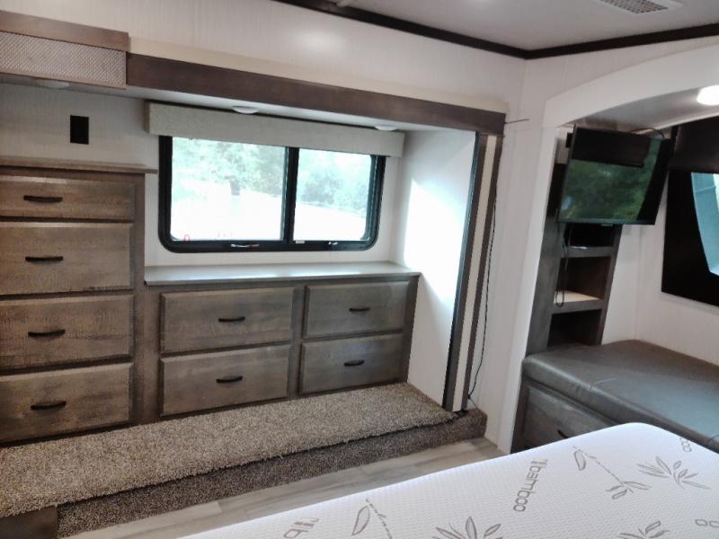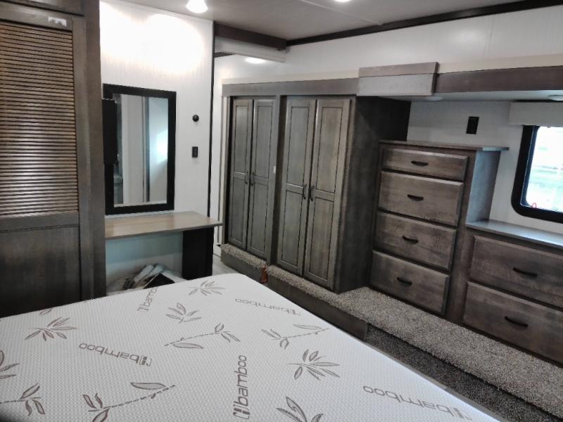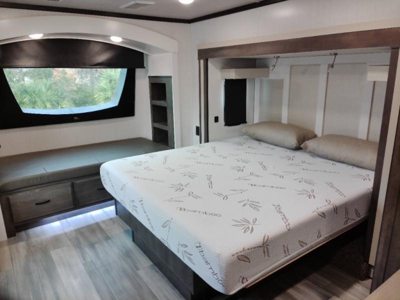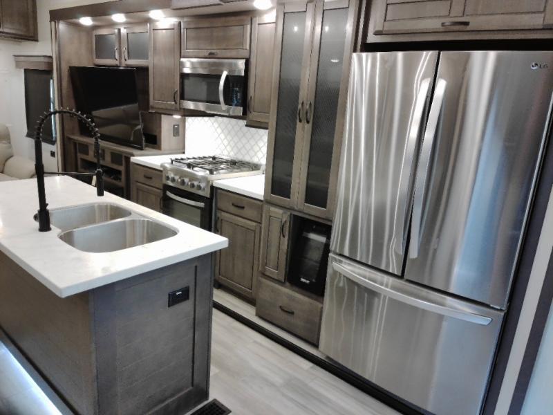 Only with the Forest River Cedar Creek Champagne Edition fifth wheel will you find a luxurious and inviting place to spend your time away. These units are the top of the line, and you will find class around every corner. The Nev-R-Adjust® brakes are always properly adjusted for improved stopping power in half the distance, and you will also have 17.5” “H” rated tires on 8,000-LB Dexter® axles. The exterior has a Go Power® solar panel with battery as well as a TST tire pressure monitoring system and a pet leash latch to prevent your puppy from running off. You'll always have hot water with the Truma On-Demand hot water heater, and you can stay at the perfect temperature during the blazing summer heat with the two Whisper Quiet ducted air conditioners with dual-zone control and cold air returns.