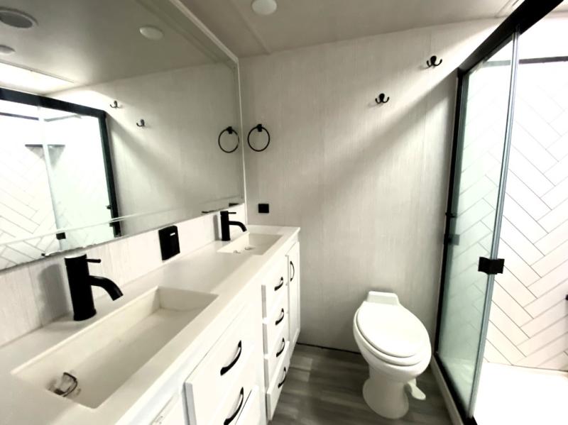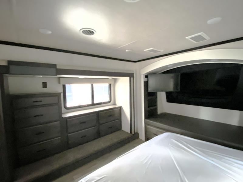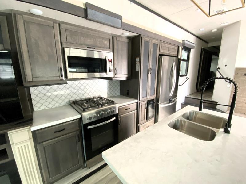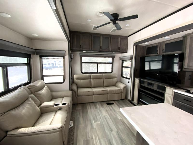 Only with the Forest River Cedar Creek Champagne Edition fifth wheel will you find a luxurious and inviting place to spend your time away. These units are the top of the line, and you will find class around every corner. The Nev-R-Adjust® brakes are always properly adjusted for improved stopping power in half the distance, and you will also have 17.5” “H” rated tires on 8,000-LB Dexter® axles. The exterior has a Go Power® solar panel with battery as well as a TST tire pressure monitoring system and a pet leash latch to prevent your puppy from running off. You'll always have hot water with the Truma On-Demand hot water heater, and you can stay at the perfect temperature during the blazing summer heat with the two Whisper Quiet ducted air conditioners with dual-zone control and cold air returns.