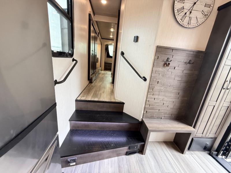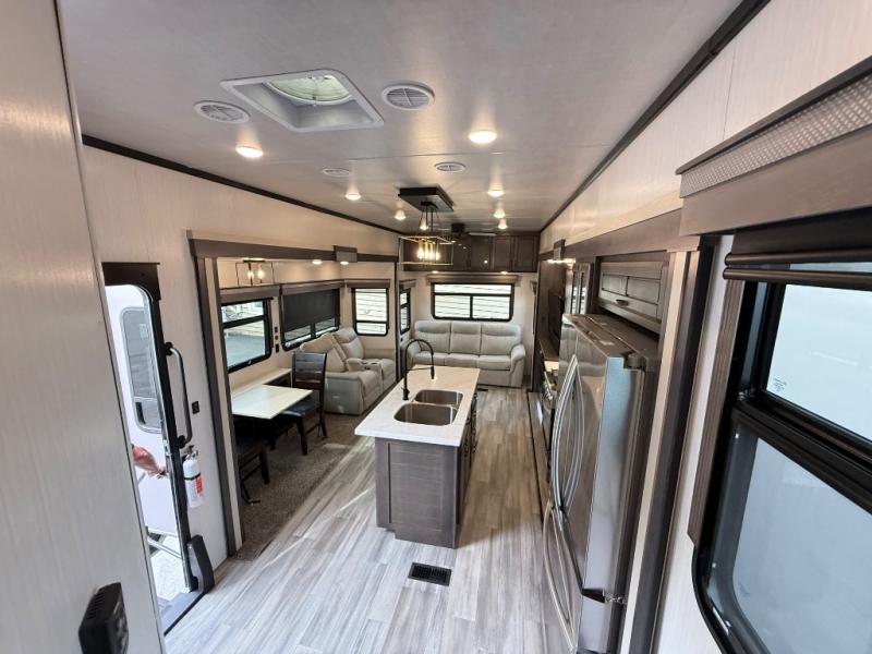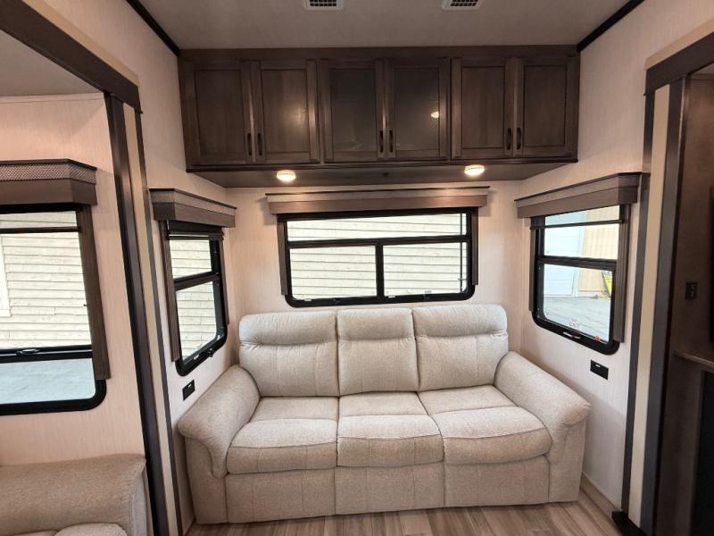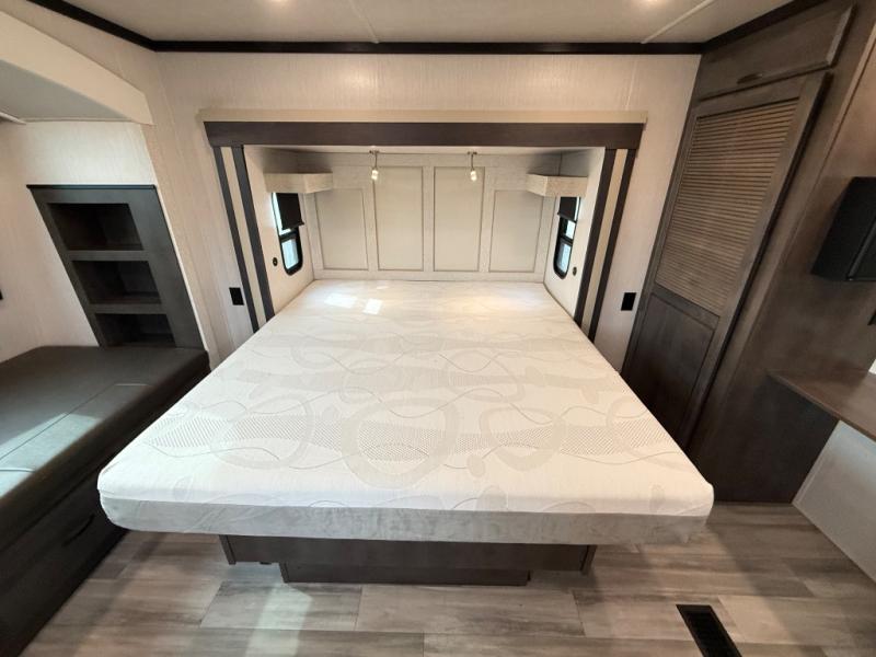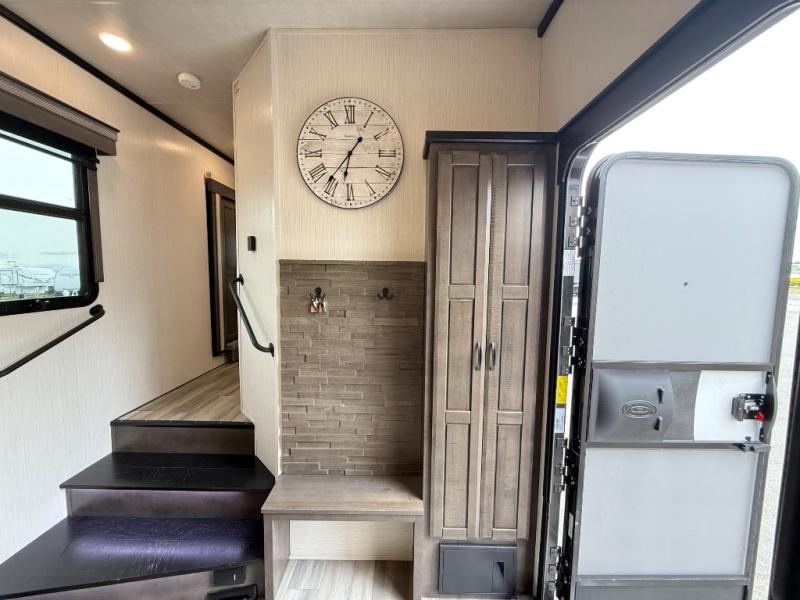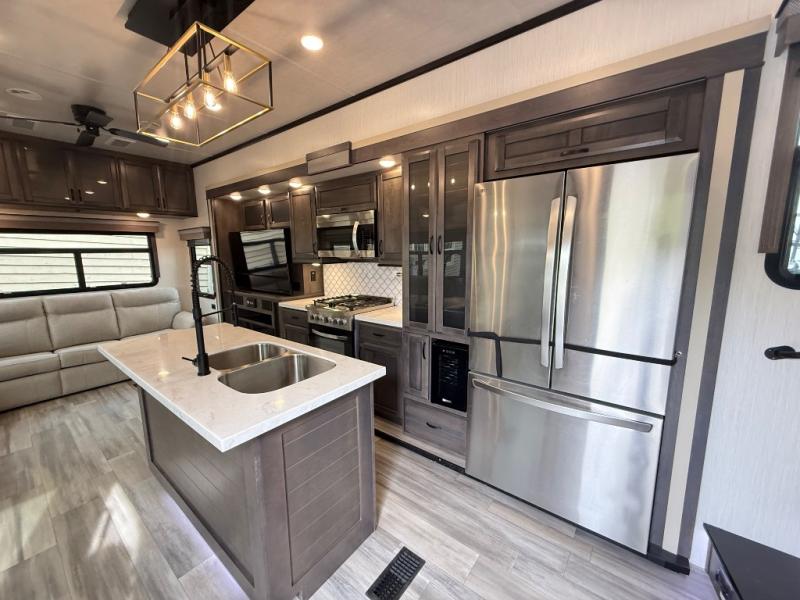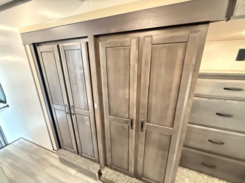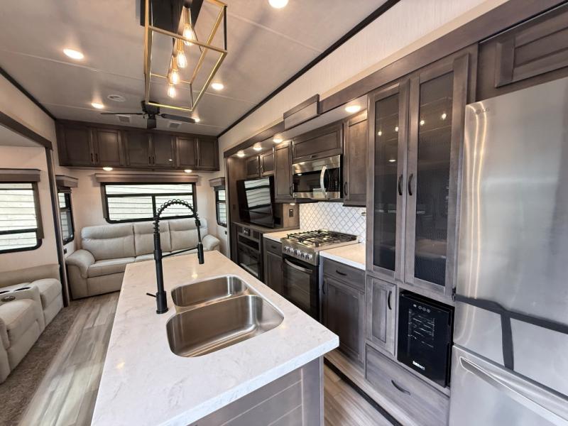 Only with the Forest River Cedar Creek Champagne Edition fifth wheel will you find a luxurious and inviting place to spend your time away. These units are the top of the line, and you will find class around every corner. The Nev-R-Adjust® brakes are always properly adjusted for improved stopping power in half the distance, and you will also have 17.5” “H” rated tires on 8,000-LB Dexter® axles. The exterior has a Go Power® solar panel with battery as well as a TST tire pressure monitoring system and a pet leash latch to prevent your puppy from running off. You'll always have hot water with the Truma On-Demand hot water heater, and you can stay at the perfect temperature during the blazing summer heat with the two Whisper Quiet ducted air conditioners with dual-zone control and cold air returns.