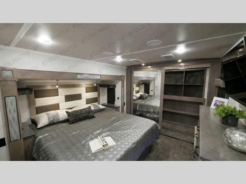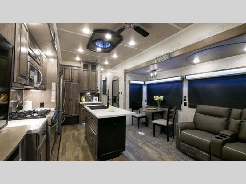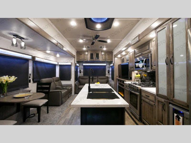 Only with the Forest River Cedar Creek Champagne Edition fifth wheel will you find a luxurious and inviting place to spend your time away. These units are the top of the line, and you will find class around every corner. The Nev-R-Adjust® brakes are always properly adjusted for improved stopping power in half the distance, and you will also have 17.5” “H” rated tires on 8,000-LB Dexter® axles. The exterior has a Go Power® solar panel with battery as well as a TST tire pressure monitoring system and a pet leash latch to prevent your puppy from running off. You'll always have hot water with the Truma On-Demand hot water heater, and you can stay at the perfect temperature during the blazing summer heat with the two Whisper Quiet ducted air conditioners with dual-zone control and cold air returns.