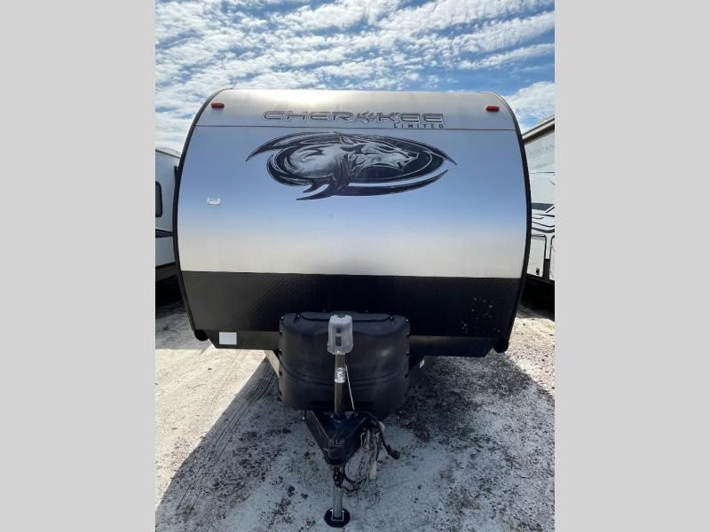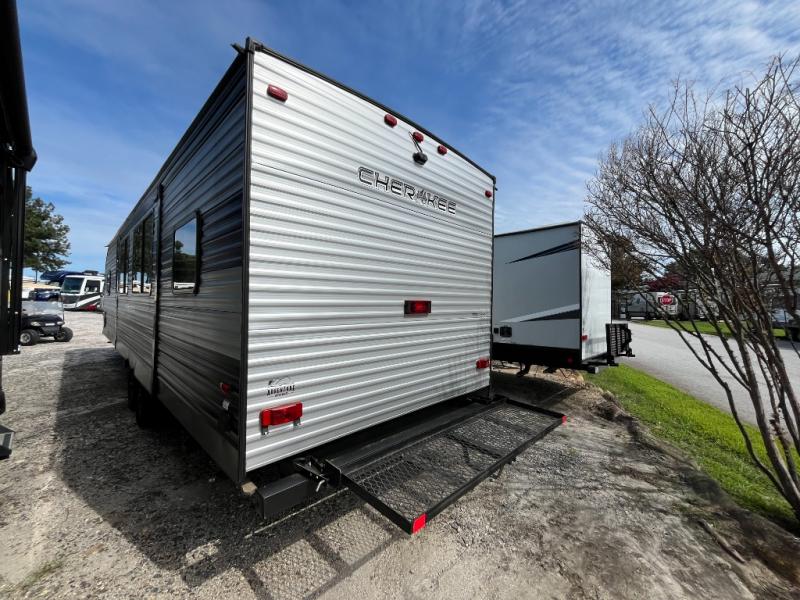 If the open road is calling your name, then answer it with one of these Forest River Cherokee travel trailers or toy haulers! A seamless roofing membrane with heat reflectivity covers these units and an armored underbelly tank enclosure protects it from road debris. The Power Gear frame technology holds them together and also comes with a space saver rail design. An outside shower with hot and cold water helps to keep the dirt outside where it belongs. With the Campfire package, you will get a beautiful entertainment center to watch your favorite movies, a sink cover for more prepping space, and a 6 gallon DSI gas/electric water heater for hot showers each morning. The Cherokee Total Control app and remote control system allows you to control your unit at the touch of a finger. A few other features you will appreciate include a super kitchen, USB charging station, and light filtering sheer shading premium blackout zebra shades for added privacy. Come find your favorite model today!