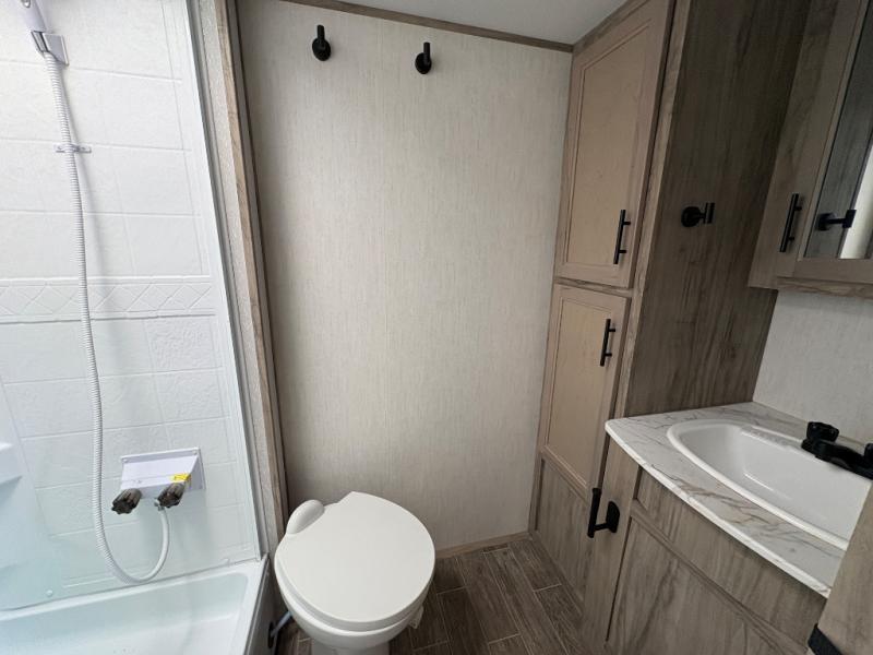 With every Forest River Cherokee Alpha Wolf travel trailer, you can enjoy off-grid camping with the Juice Pack solar power feature which includes a 50W roof mount panel, Series 27 battery, battery disconnect and box, volt meter and 30 Amp solar charger. The Juice Pack will continuously charge your battery bank and power your entire 12V electrical system including your Cannon refrigerator. With good sun your refrigerator will run for 60+ hours. Some other highlights include Zebra shades in the main living area, a motion sensing night light in the bathroom, plus deluxe furniture and bedding including a super-plush Evergreen mattress for your comfort. Each unit is constructed using a one-piece fiberglass, gel-coated, front cap with LED strip lights, an engineered wood "SuperTruss" roof structure, and "ToughBend" rigid skirt metal making each Alpha Wolf more aerodynamic and having increased structural strength. Be the Alpha in your group, choose your very own Cherokee Alpha Wolf trailer today!