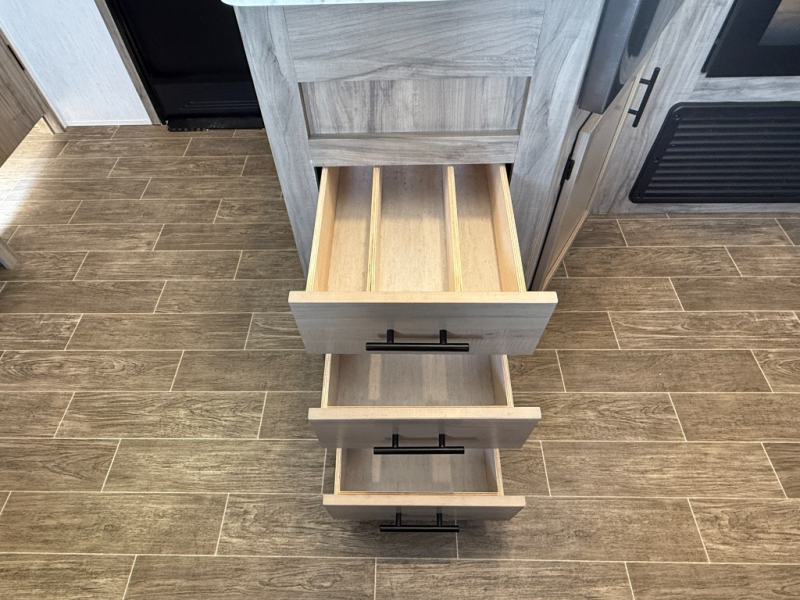 With every Forest River Cherokee Alpha Wolf travel trailer, you can enjoy off-grid camping with the Juice Pack solar power feature which includes a 50W roof mount panel, Series 27 battery, battery disconnect and box, volt meter and 30 Amp solar charger. The Juice Pack will continuously charge your battery bank and power your entire 12V electrical system including your Cannon refrigerator. With good sun your refrigerator will run for 60+ hours. Some other highlights include Zebra shades in the main living area, a motion sensing night light in the bathroom, plus deluxe furniture and bedding including a super-plush Evergreen mattress for your comfort. Each unit is constructed using a one-piece fiberglass, gel-coated, front cap with LED strip lights, an engineered wood "SuperTruss" roof structure, and "ToughBend" rigid skirt metal making each Alpha Wolf more aerodynamic and having increased structural strength. Be the Alpha in your group, choose your very own Cherokee Alpha Wolf trailer today!