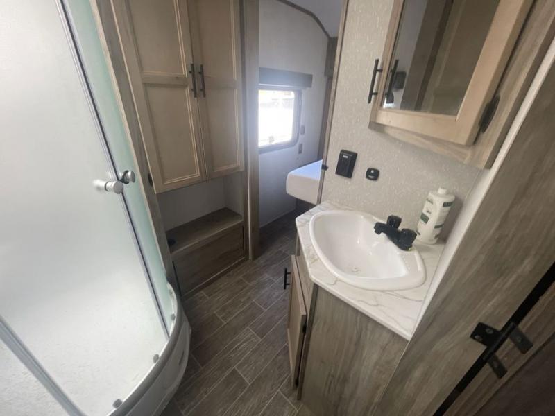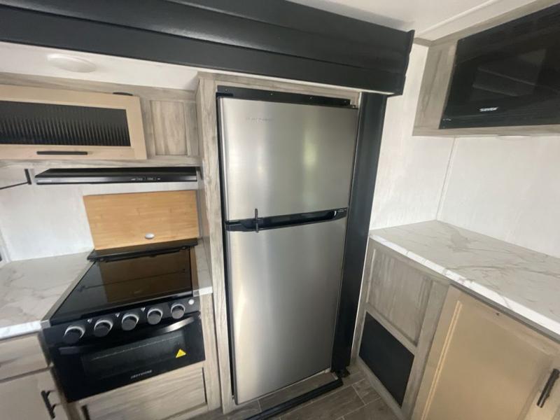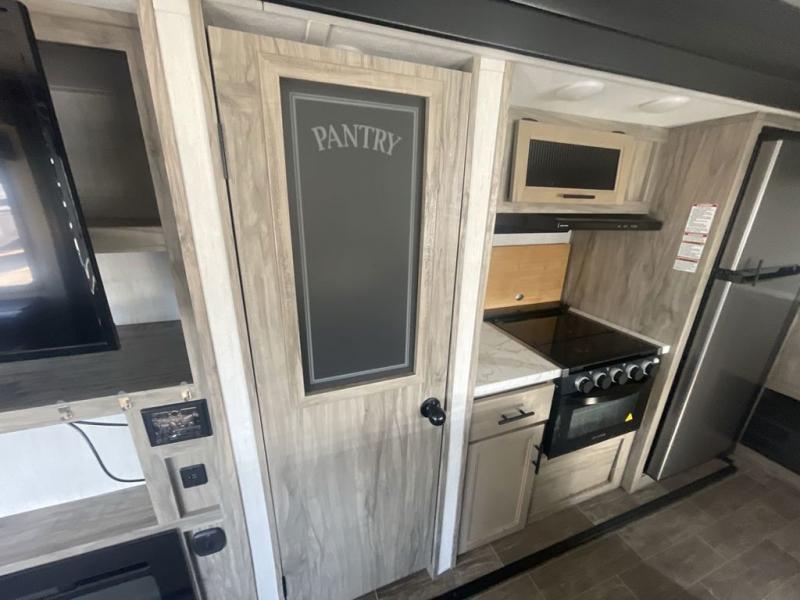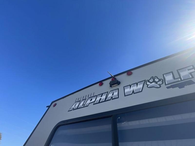 With every Forest River Cherokee Alpha Wolf travel trailer, you can enjoy off-grid camping with the Juice Pack solar power feature which includes a 50W roof mount panel, Series 27 battery, battery disconnect and box, volt meter and 30 Amp solar charger. The Juice Pack will continuously charge your battery bank and power your entire 12V electrical system including your Cannon refrigerator. With good sun your refrigerator will run for 60+ hours. Some other highlights include Zebra shades in the main living area, a motion sensing night light in the bathroom, plus deluxe furniture and bedding including a super-plush Evergreen mattress for your comfort. Each unit is constructed using a one-piece fiberglass, gel-coated, front cap with LED strip lights, an engineered wood "SuperTruss" roof structure, and "ToughBend" rigid skirt metal making each Alpha Wolf more aerodynamic and having increased structural strength. Be the Alpha in your group, choose your very own Cherokee Alpha Wolf trailer today!