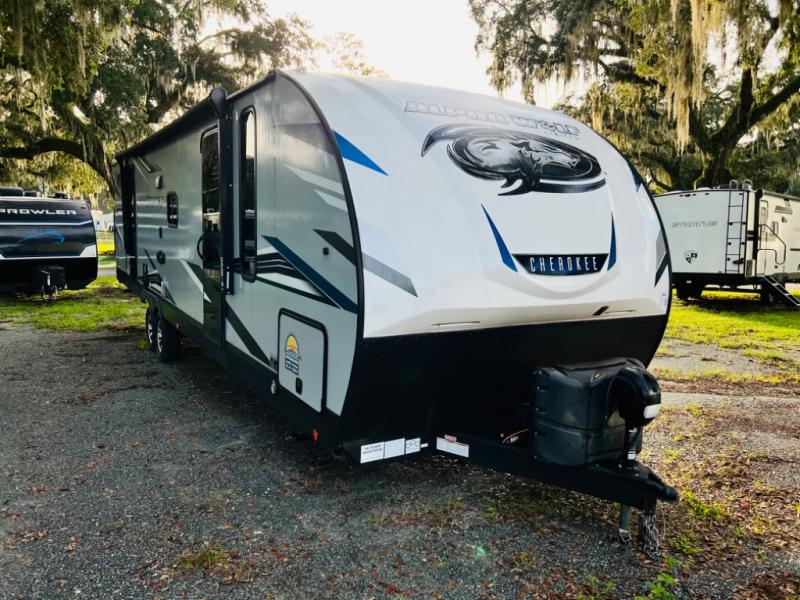 With every Forest River Cherokee Alpha Wolf travel trailer, you can enjoy off-grid camping with the Juice Pack solar power feature which includes a 50W roof mount panel, Series 27 battery, battery disconnect and box, volt meter and 30 Amp solar charger. The Juice Pack will continuously charge your battery bank and power your entire 12V electrical system including your Cannon refrigerator. With good sun your refrigerator will run for 60+ hours. Some other highlights include Zebra shades in the main living area, a motion sensing night light in the bathroom, plus deluxe furniture and bedding including a super-plush Evergreen mattress for your comfort. Each unit is constructed using a one-piece fiberglass, gel-coated, front cap with LED strip lights, an engineered wood "SuperTruss" roof structure, and "ToughBend" rigid skirt metal making each Alpha Wolf more aerodynamic and having increased structural strength. Be the Alpha in your group, choose your very own Cherokee Alpha Wolf trailer today!