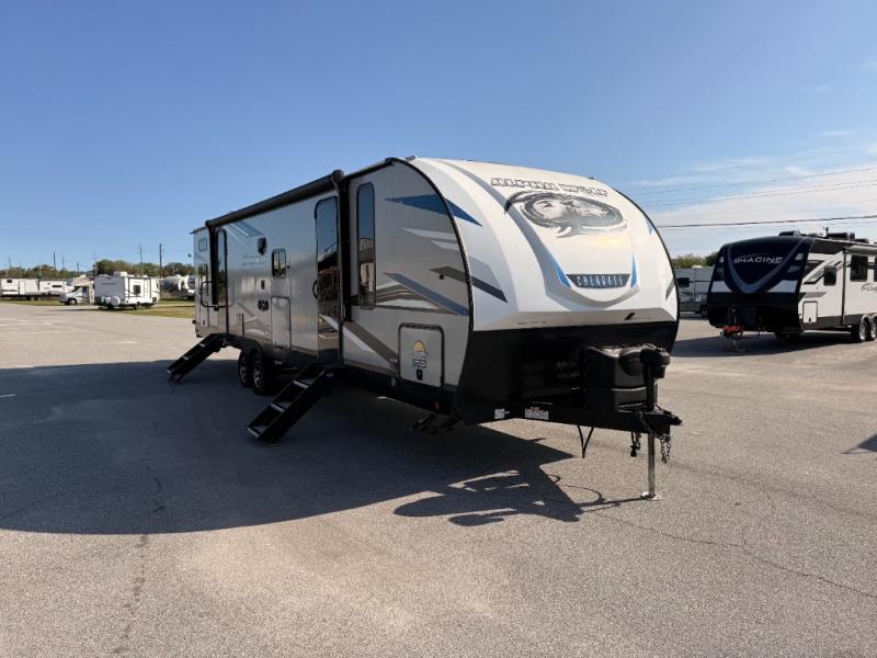 With every Forest River Cherokee Alpha Wolf travel trailer, you can enjoy off-grid camping with the Juice Pack solar power feature which includes a 50W roof mount panel, Series 27 battery, battery disconnect and box, volt meter and 30 Amp solar charger. The Juice Pack will continuously charge your battery bank and power your entire 12V electrical system including your Cannon refrigerator. With good sun your refrigerator will run for 60+ hours. Some other highlights include Zebra shades in the main living area, a motion sensing night light in the bathroom, plus deluxe furniture and bedding including a super-plush Evergreen mattress for your comfort. Each unit is constructed using a one-piece fiberglass, gel-coated, front cap with LED strip lights, an engineered wood "SuperTruss" roof structure, and "ToughBend" rigid skirt metal making each Alpha Wolf more aerodynamic and having increased structural strength. Be the Alpha in your group, choose your very own Cherokee Alpha Wolf trailer today!
