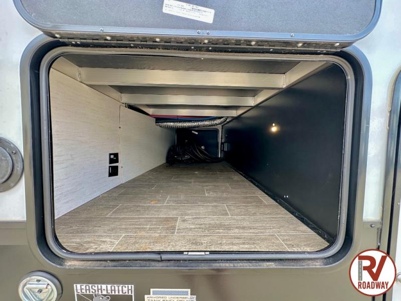You'll have the very best time tackling outdoor adventures with the Forest River Cherokee Arctic Wolf fifth wheel! Each model has been constructed with a “ToughBend” rigid skirt metal design, Leash Latch pet safety technology, an outside shower with hot/cold water, a 1x engineered wood “SuperTruss” roof structure with 3/8" decking, and aluminum rims. The interior offers you a dual-zone Bluetooth stereo optimized for USB flash drives, iPods, and other MP3 players, and you'll find motion-sensor lighting to help you see when it's dark. There is an interior-mounted “My RV” control pad diagnostic and auto level control pad as well as a smart monitor panel with smart phone Bluetooth connectivity. These models have been prepped for a second air conditioner, and they have also been prepped for a bumper-mount swing-arm grill.