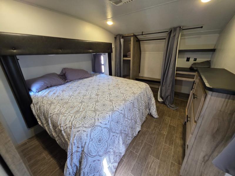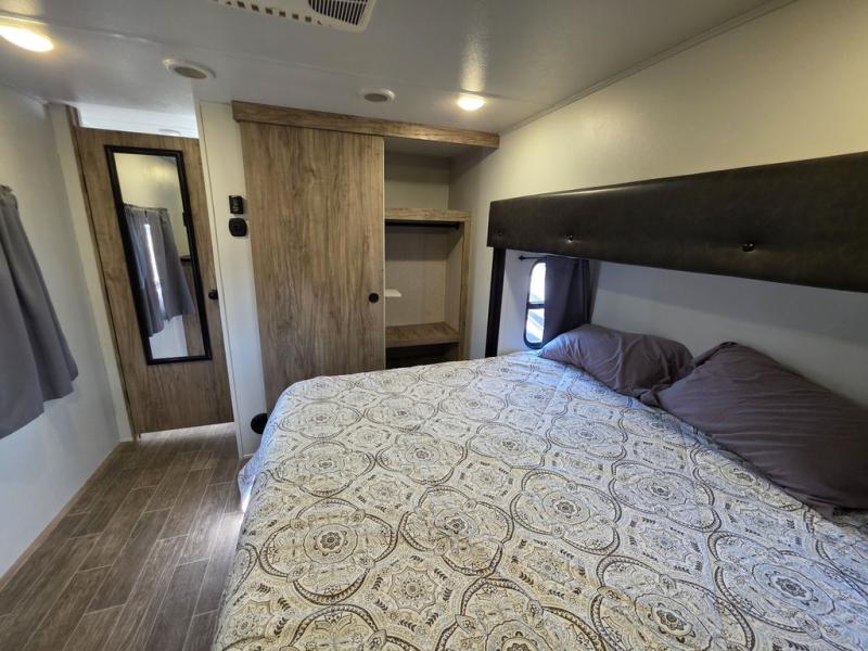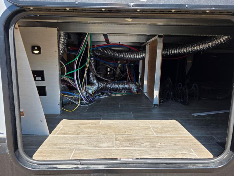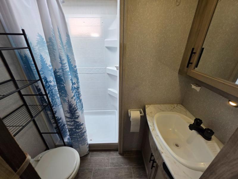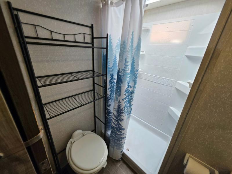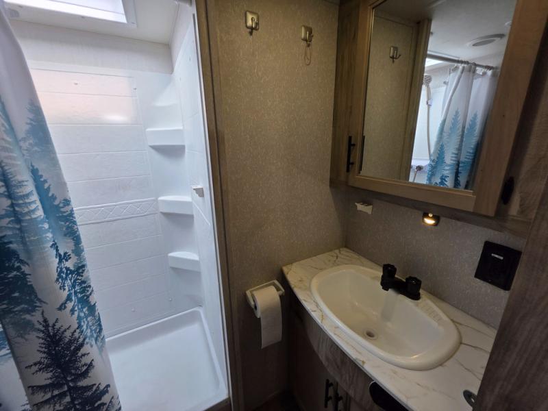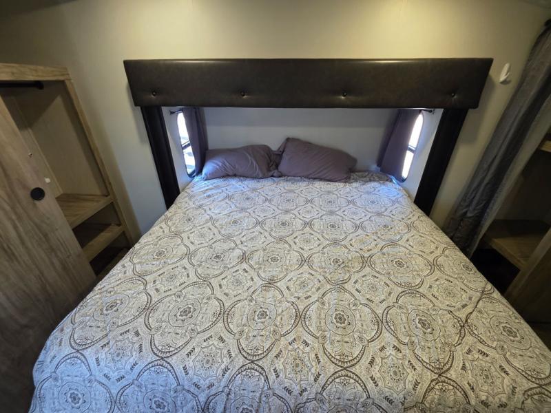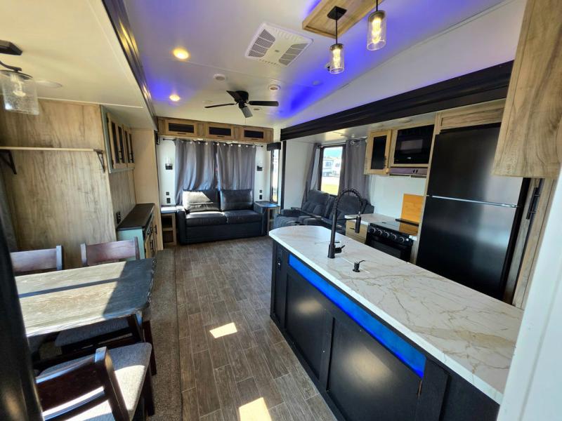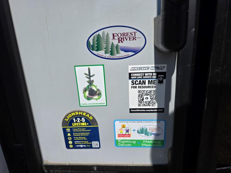 You will have amazing residential comfort in the Forest River Cherokee Arctic Wolf Suite fifth wheels! These units have a “SuperStor” dual-cavern basement storage compartment to allow you to bring more gear, and they have been constructed with a “ToughBend” rigid skirt metal design, a 1x engineered wood “SuperTruss” roof structure with 3/8" decking, and a 5/8” tongue-and-groove plywood floor decking. Each model includes Leash Latch pet safety technology, an outside shower with hot/cold water, preparations for an exterior TV, motion-sensing lighting, and a smart monitor panel with smart phone Bluetooth connectivity. The supersized central air conditioning unit (15,000 BTU) with quick cool air dump feature and second oversized 15,000 BTU ducted air conditioner will cool your unit down in a snap when you camp in the hot summer months.
