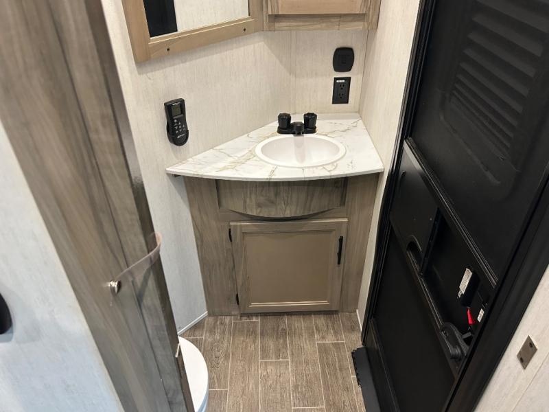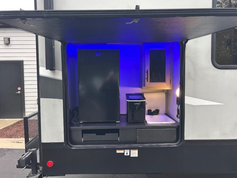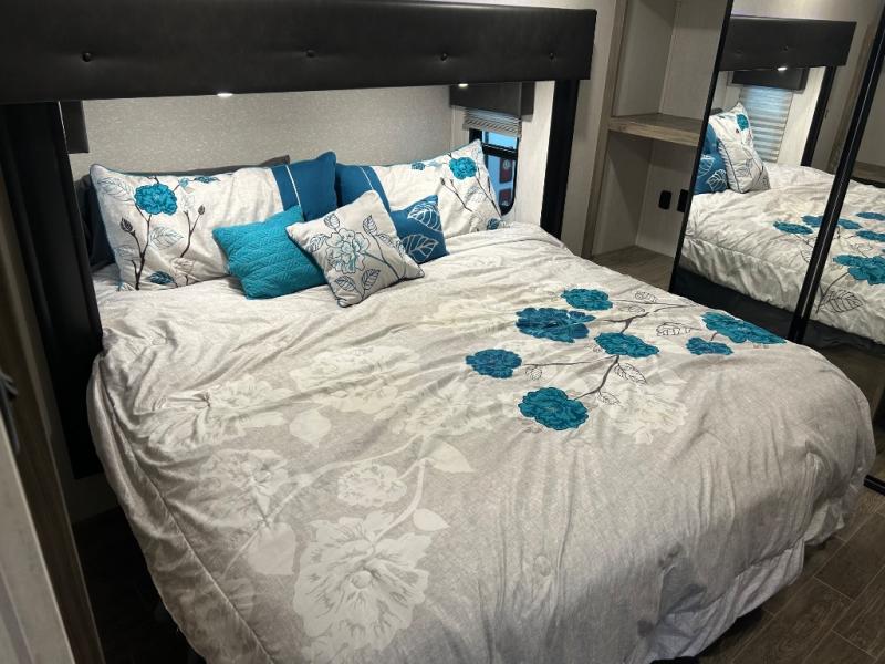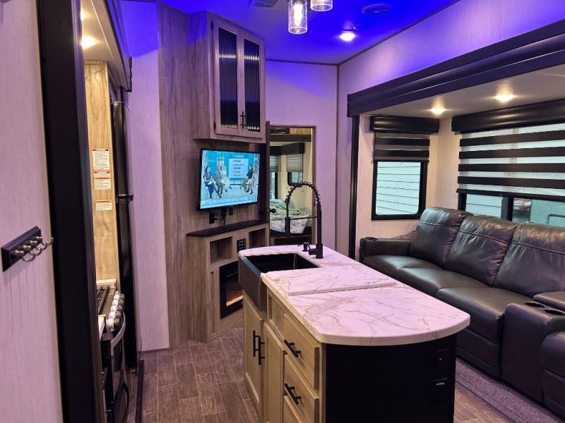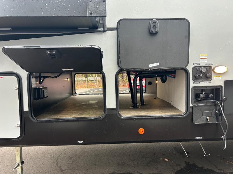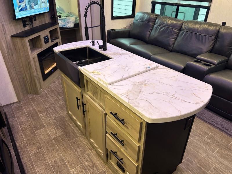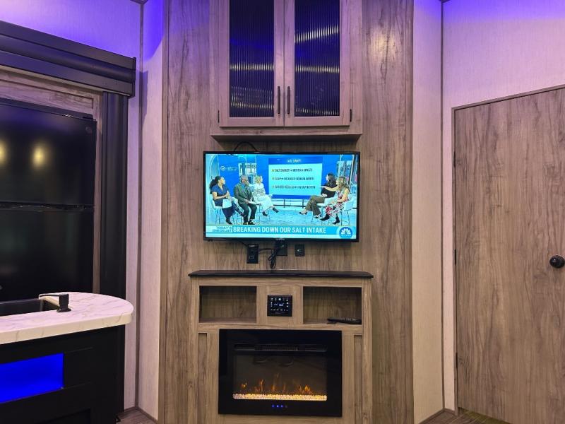 You will have amazing residential comfort in the Forest River Cherokee Arctic Wolf Suite fifth wheels! These units have a “SuperStor” dual-cavern basement storage compartment to allow you to bring more gear, and they have been constructed with a “ToughBend” rigid skirt metal design, a 1x engineered wood “SuperTruss” roof structure with 3/8" decking, and a 5/8” tongue-and-groove plywood floor decking. Each model includes Leash Latch pet safety technology, an outside shower with hot/cold water, preparations for an exterior TV, motion-sensing lighting, and a smart monitor panel with smart phone Bluetooth connectivity. The supersized central air conditioning unit (15,000 BTU) with quick cool air dump feature and second oversized 15,000 BTU ducted air conditioner will cool your unit down in a snap when you camp in the hot summer months.