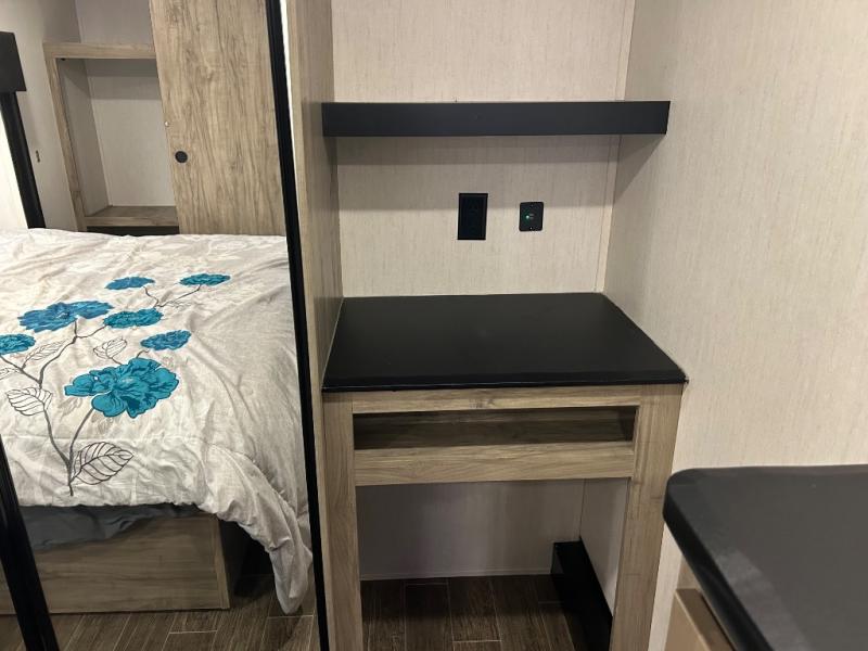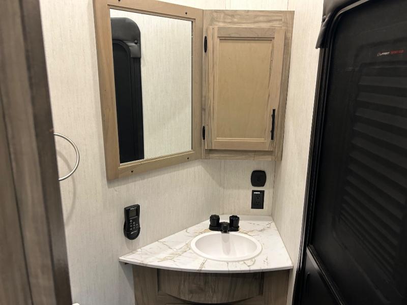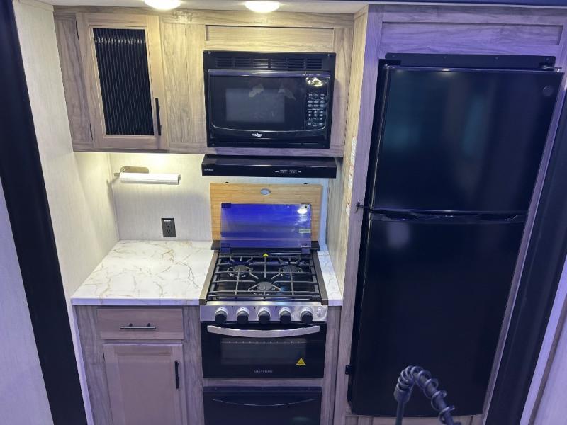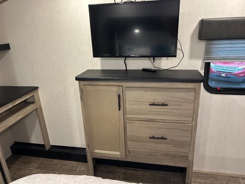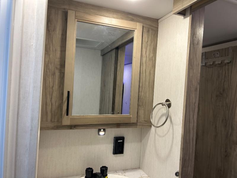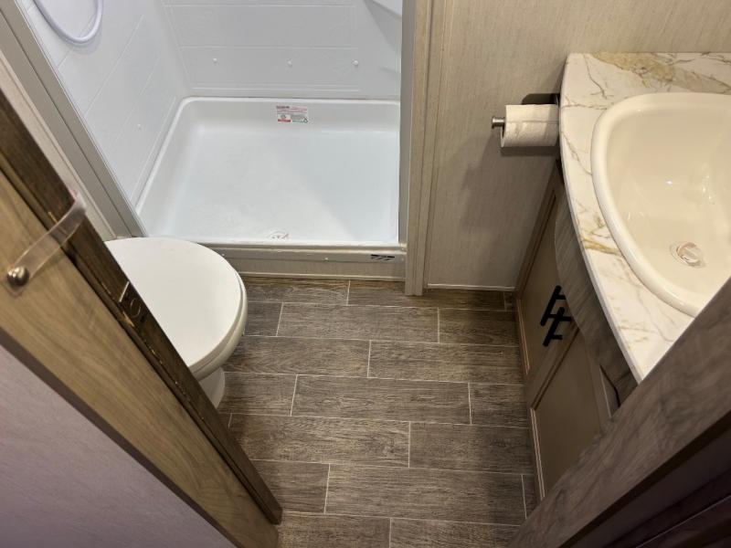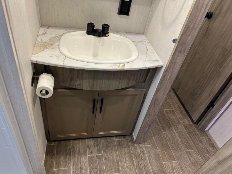 You will have amazing residential comfort in the Forest River Cherokee Arctic Wolf Suite fifth wheels! These units have a “SuperStor” dual-cavern basement storage compartment to allow you to bring more gear, and they have been constructed with a “ToughBend” rigid skirt metal design, a 1x engineered wood “SuperTruss” roof structure with 3/8" decking, and a 5/8” tongue-and-groove plywood floor decking. Each model includes Leash Latch pet safety technology, an outside shower with hot/cold water, preparations for an exterior TV, motion-sensing lighting, and a smart monitor panel with smart phone Bluetooth connectivity. The supersized central air conditioning unit (15,000 BTU) with quick cool air dump feature and second oversized 15,000 BTU ducted air conditioner will cool your unit down in a snap when you camp in the hot summer months.